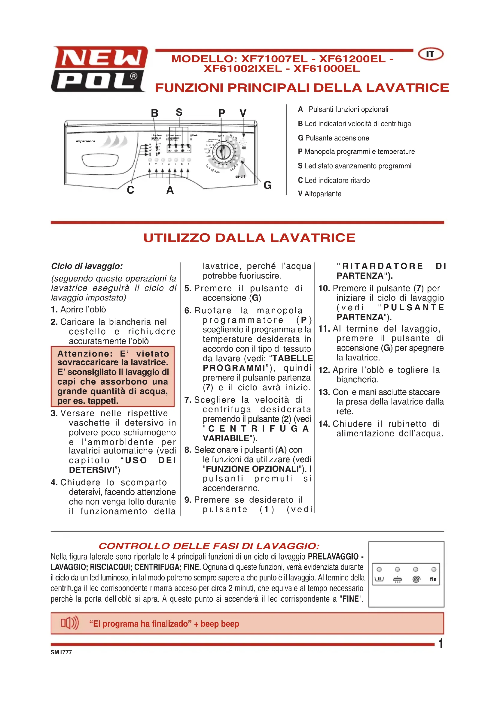 Scarica le istruzioni per il tuo Lavatrice in formato PDF gratuitamente! Trova il tuo manuale XF6 1200EL - NEW POL e riprendi in mano il tuo dispositivo elettronico. In questa pagina sono pubblicati tutti i documenti necessari per l'utilizzo del tuo dispositivo. XF6 1200EL del marchio NEW POL.