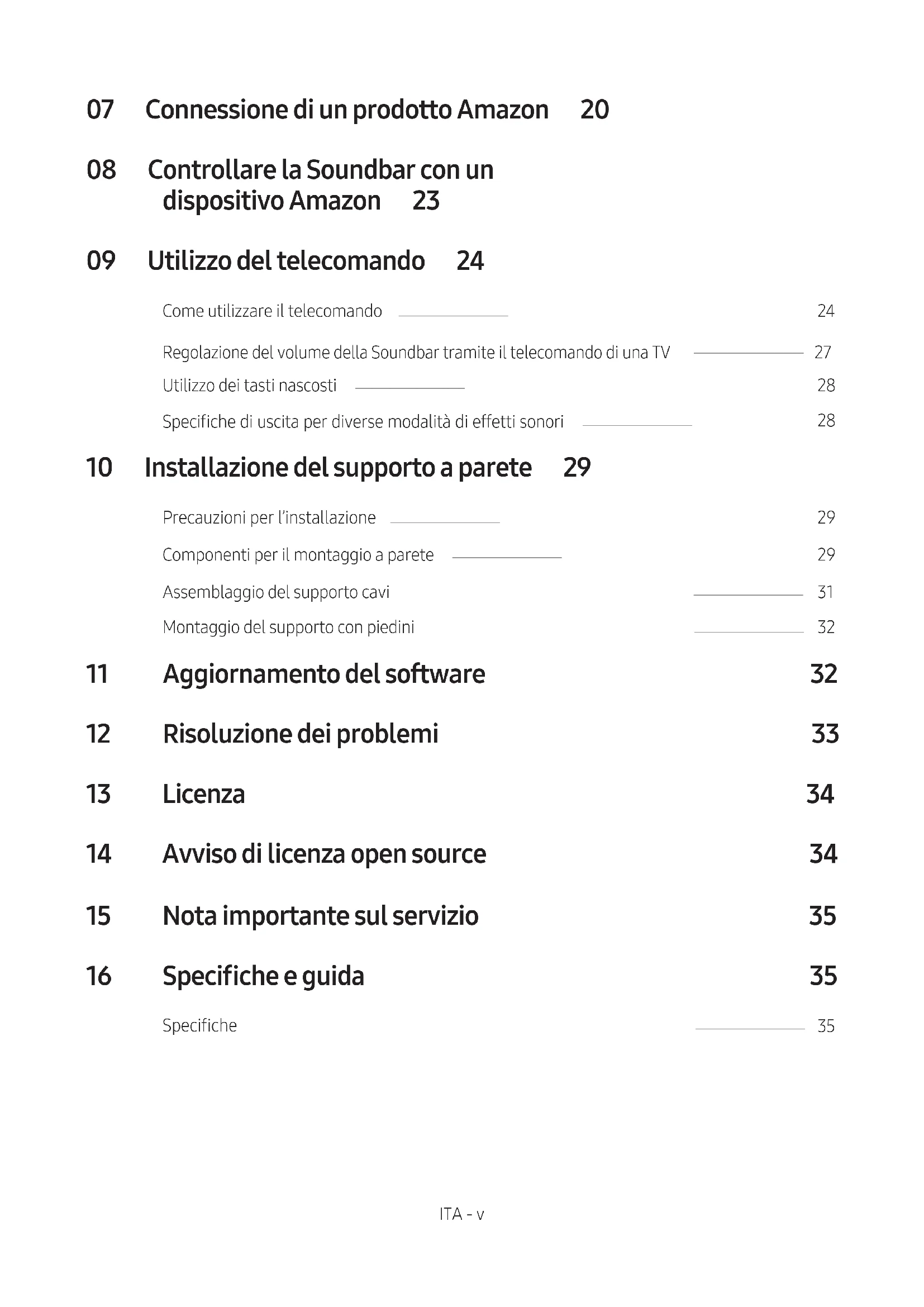 18ITA - v 07 ConnessionediunprodottoAmazon 20 08 ControllarelaSoundbarconun dispositivoAmazon 23 09 Utilizzodeltelecomando 24 Come utilizzare il telecomando