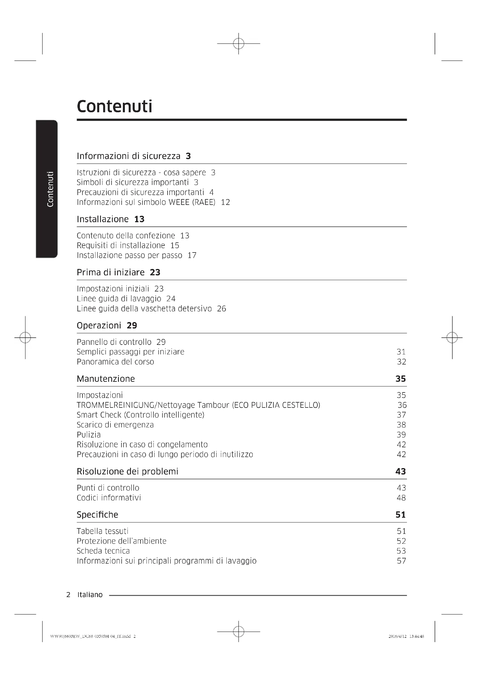 WW90J6603EW_DC68-03505H-04_IT.indd 4 2016/4/12 13:44:48Italiano 5 Informazioni di sicurezza
