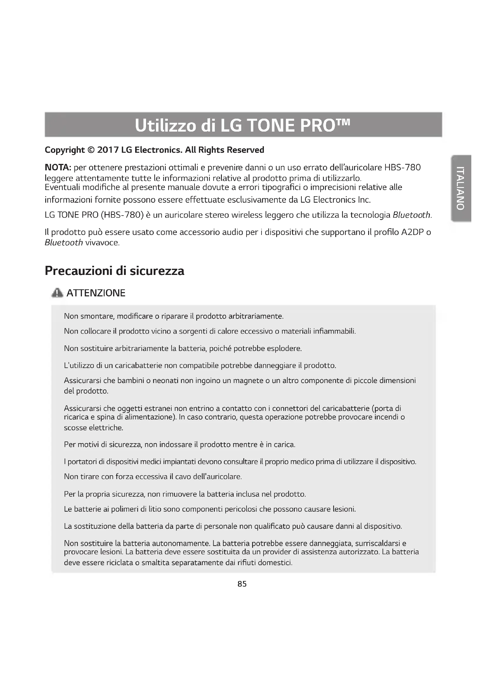 MANUALE UTENTE Tone Pro HBS780 LG