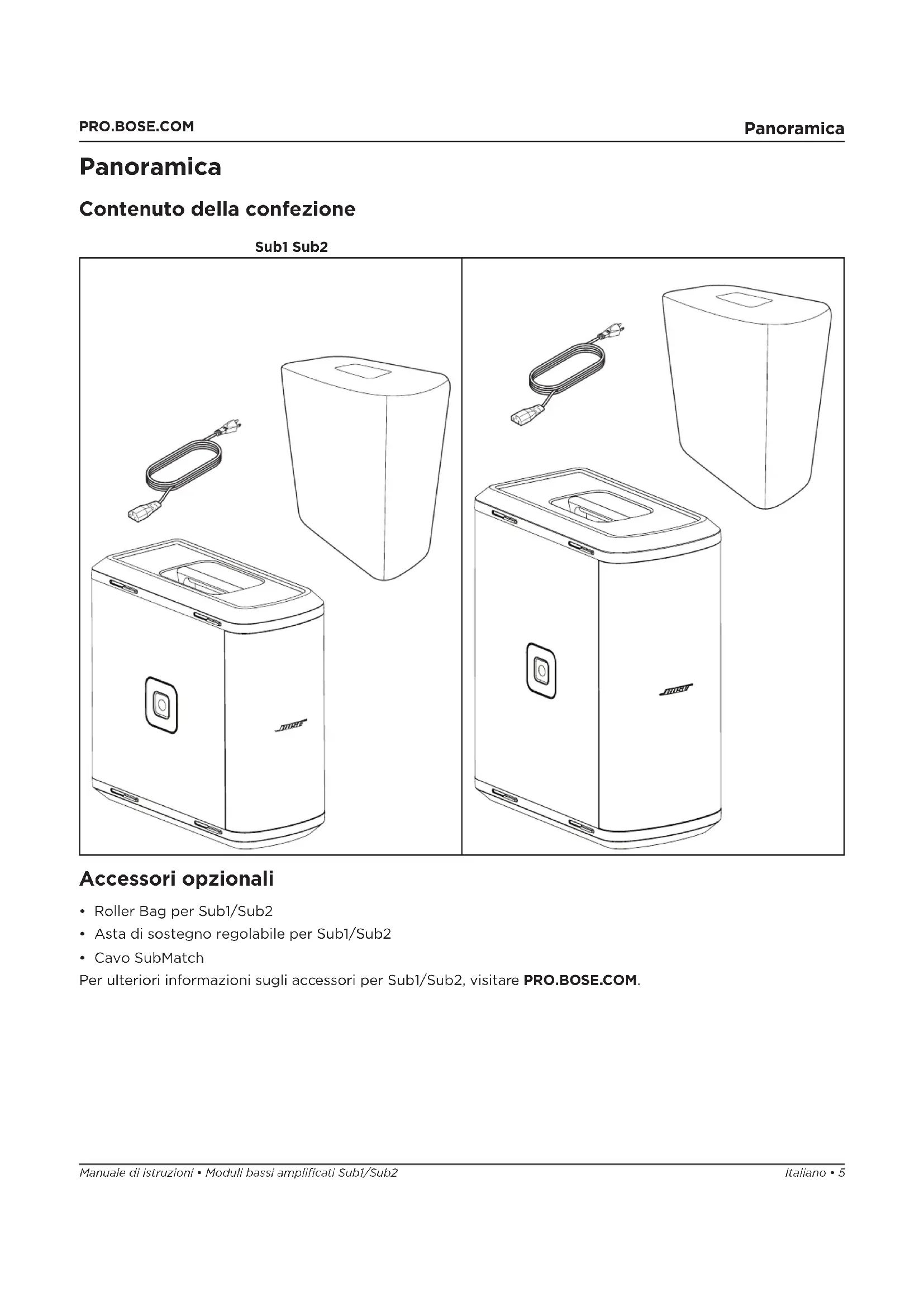- Cavo SubMatch Per ulteriori informazioni sugli accessori per Sub1/Sub2, visitare PRO.BOSE.COM.6 • Italiano Moduli bassi amplificati Sub1/Sub2 • Manuale di istruzioni