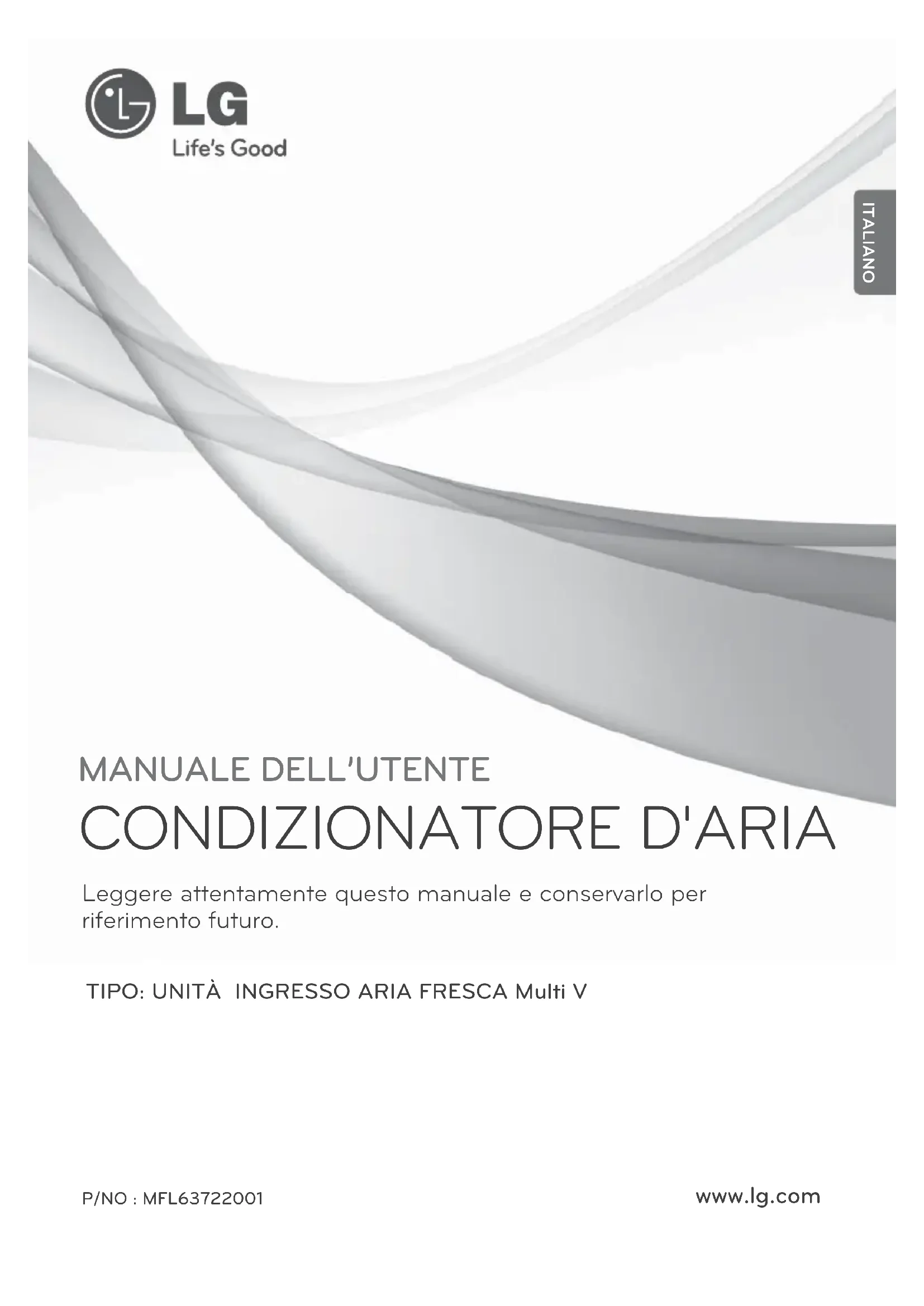 www.lg.com ITALIANO2 Unità ingresso aria fresca Manuale dellʼutente dellʼunità di aspirazione UNITÀ INGRESSO ARIA FRESCA
