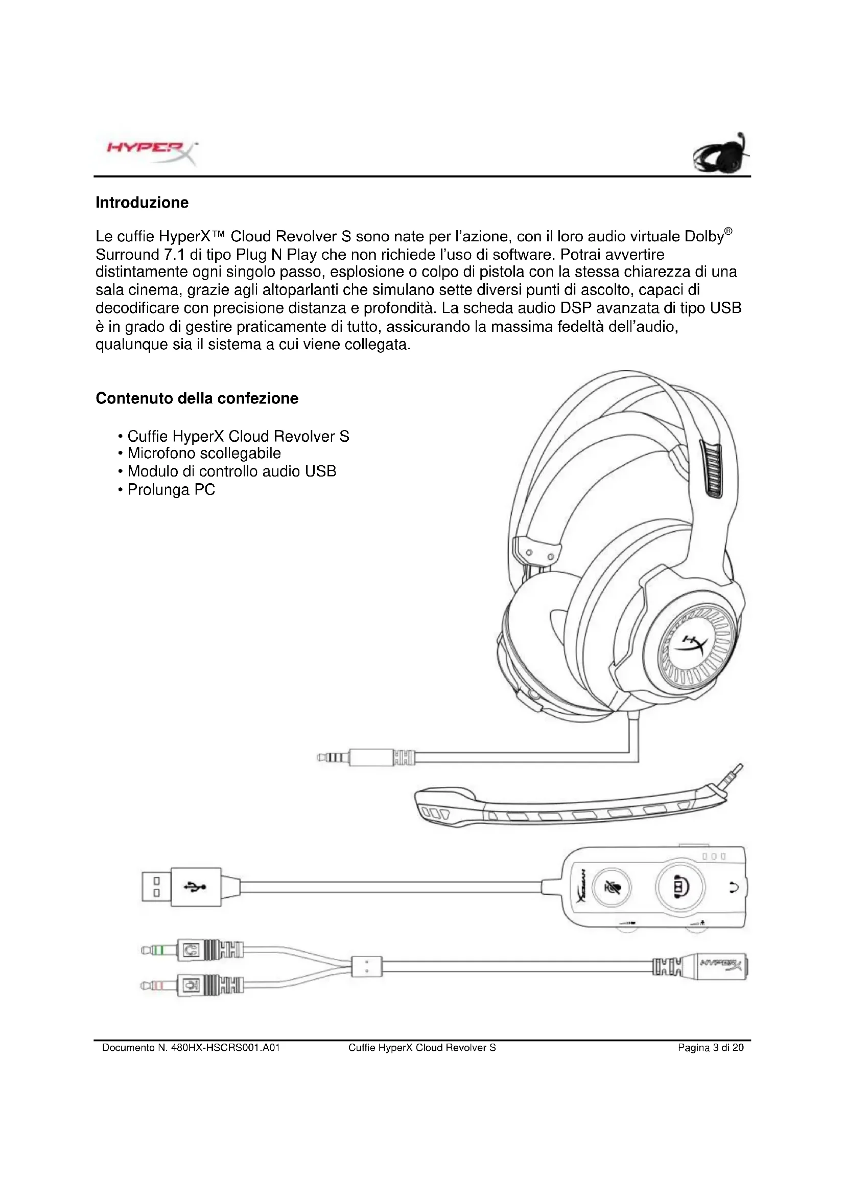 - Prolunga PCDocumento N. 480HX-HSCRS001.A01 Cuffie HyperX Cloud Revolver S Pagina 4 di 20 Caratteristiche