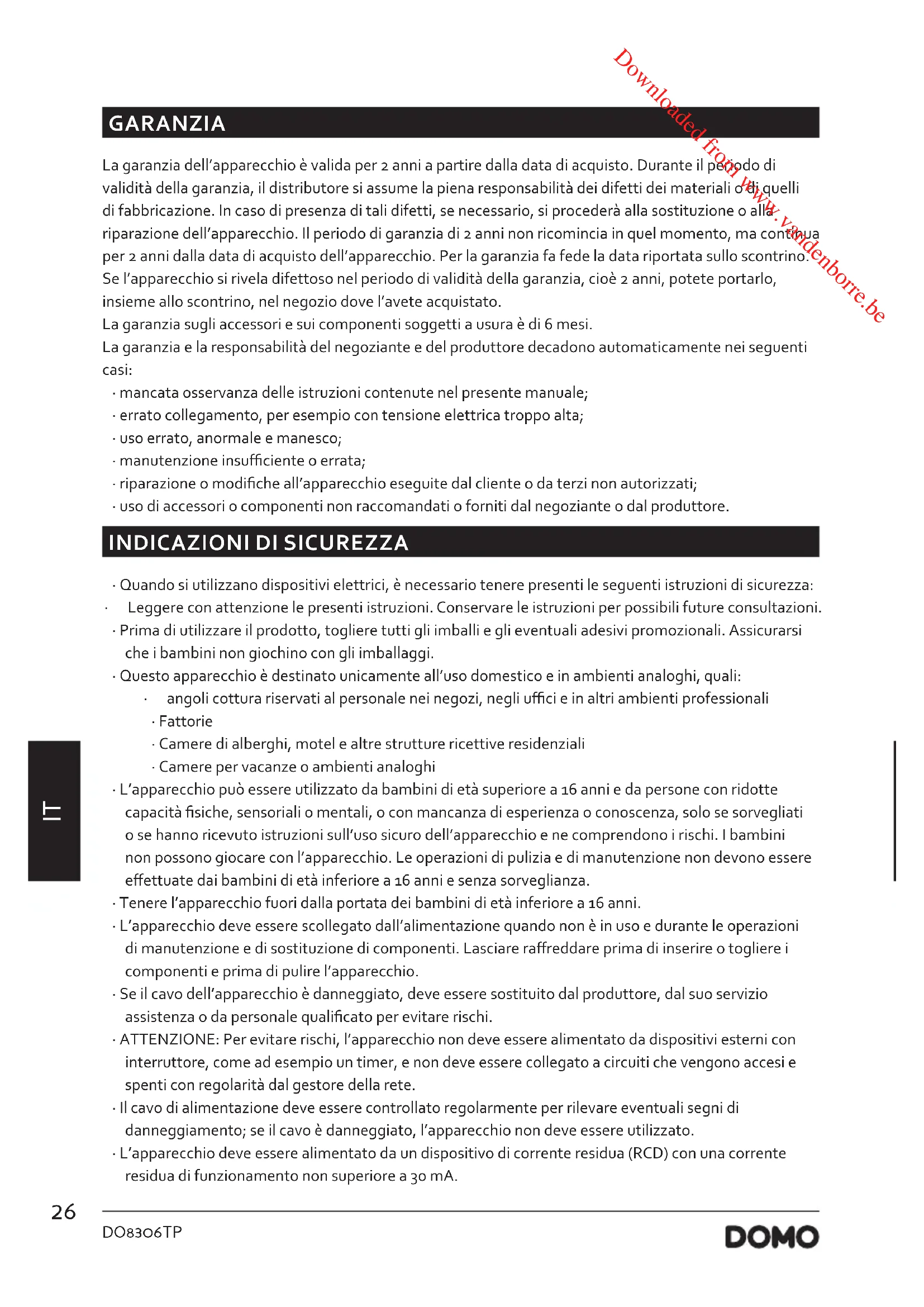 - Non possono esserne ritenuti responsabili né il produttore, né l’importatore, né il rivenditore. CONSERVARE LE PRESENTI ISTRUZIONI PER FUTURA CONSULTAZIONE. Downloaded from www.vandenborre.be28 DO8306TP