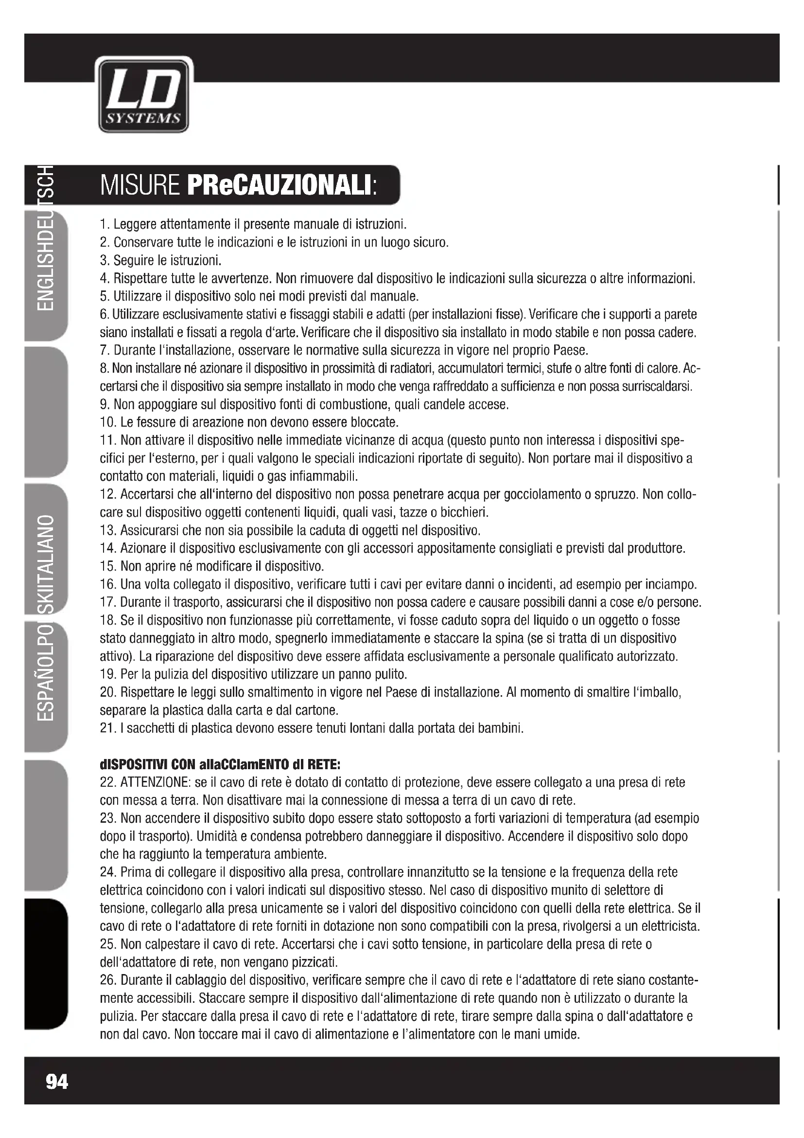 Leggete attendamente quello manuale d'uso per utilizzato al meglio il vostro nuovo prodotto LD Systems.