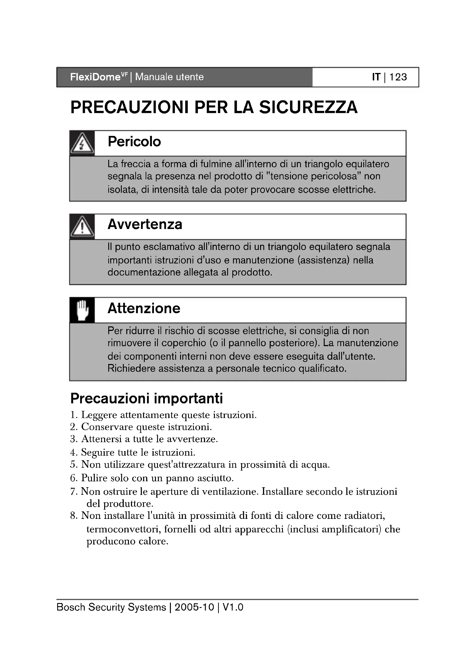 | Manuale utente Bosch Security Systems | 2005-10 | V1.0 IT | 123