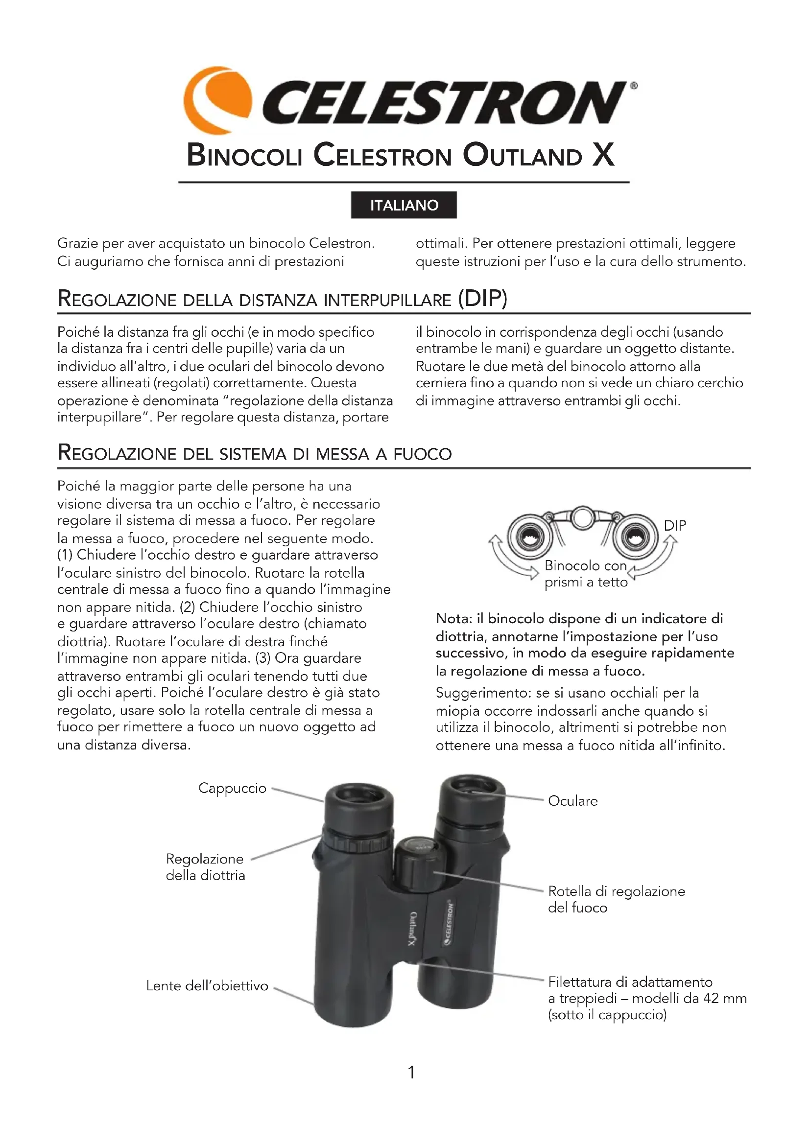 Outland X - Binocoli CELESTRON - Manuale utente e istruzioni gratuiti