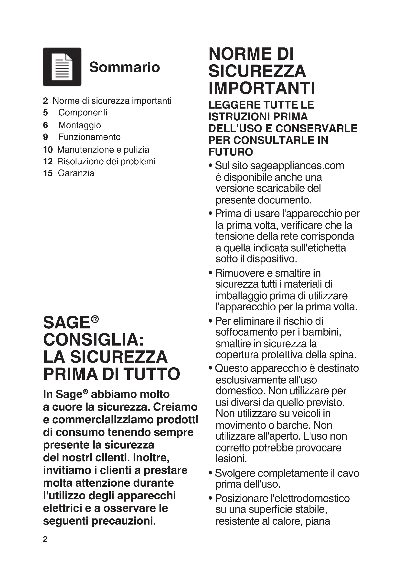 - Sul sito sageappliances.com è disponibile anche una versione scaricabile del presente documento.