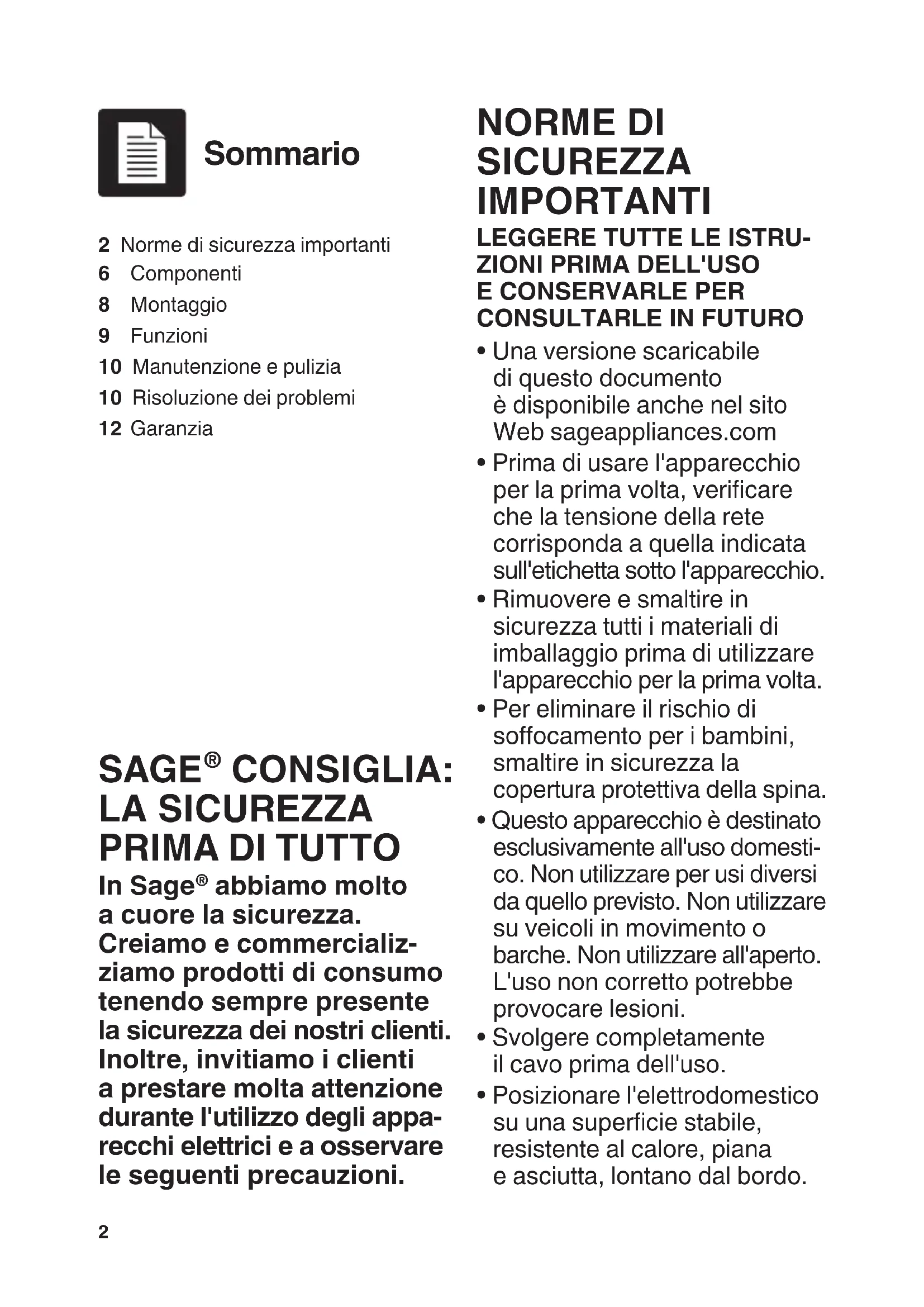 - Una versione scaricabile di questo documento è disponibile anche nel sito Web sageappliances.com