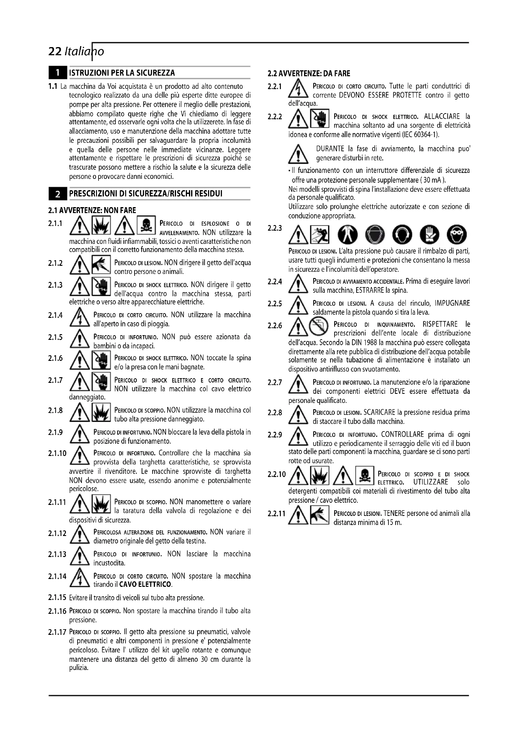 Leggere questo manuale prima dell’installazione/uso dell’idropulitrice, prestando particolare attenzione alle ISTRUZIONI