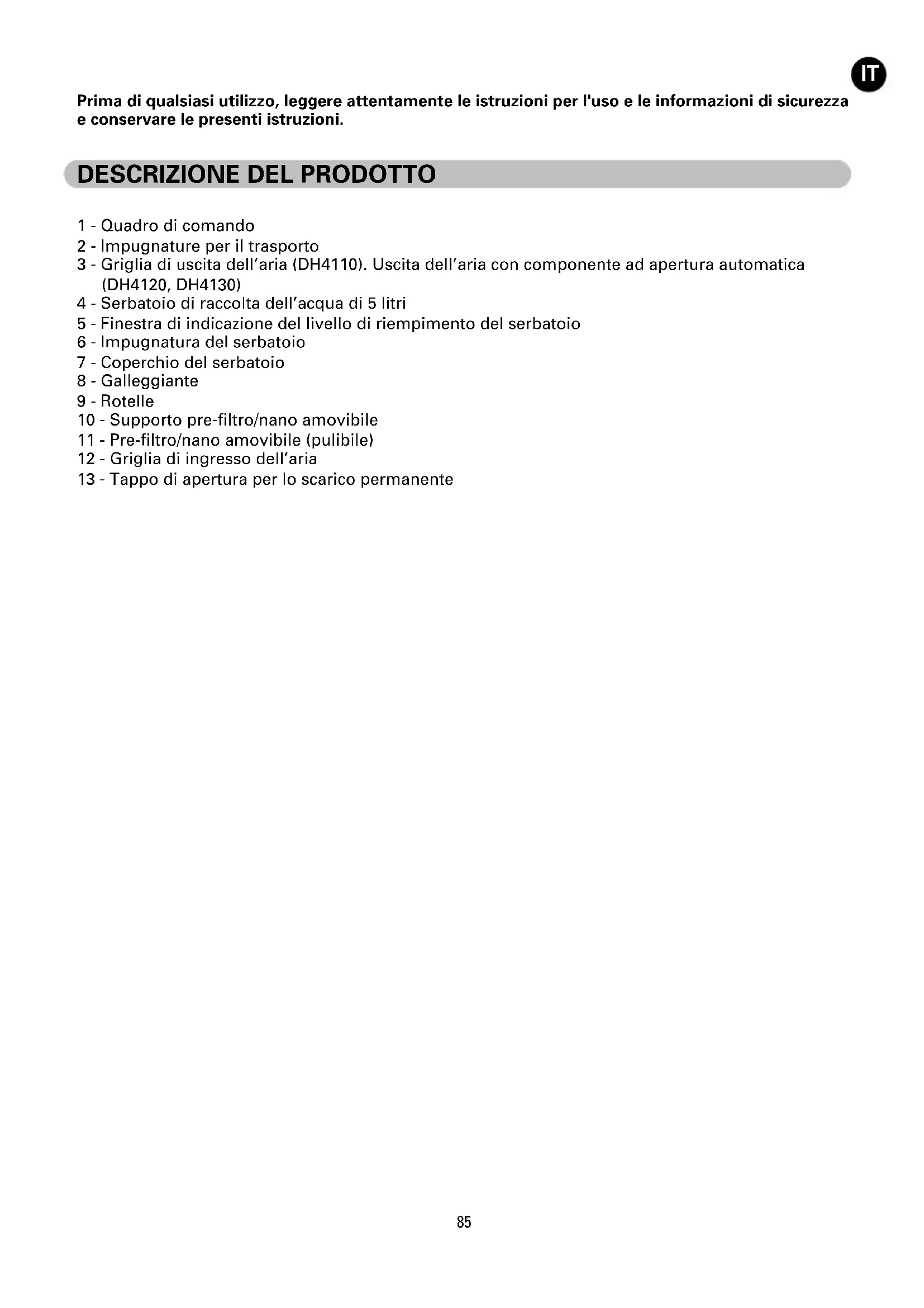 RO_Deshumidificateur_DH41_NC00112165-03_NC00112165 10/04/14 14:20 Page8788 AVVERTENZE Leggere con attenzione le presenti istruzioni e osservare le raccomandazioni seguenti: