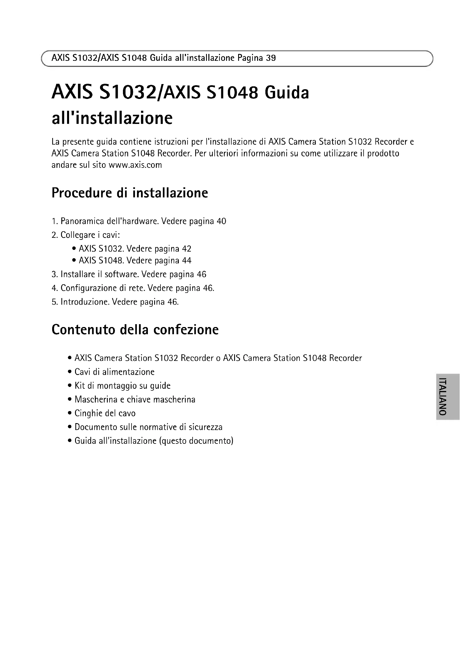 alimentazione al monitor.AXIS S1032/AXIS S1048 Guida all'installazione Pagina 43 ITALIANO