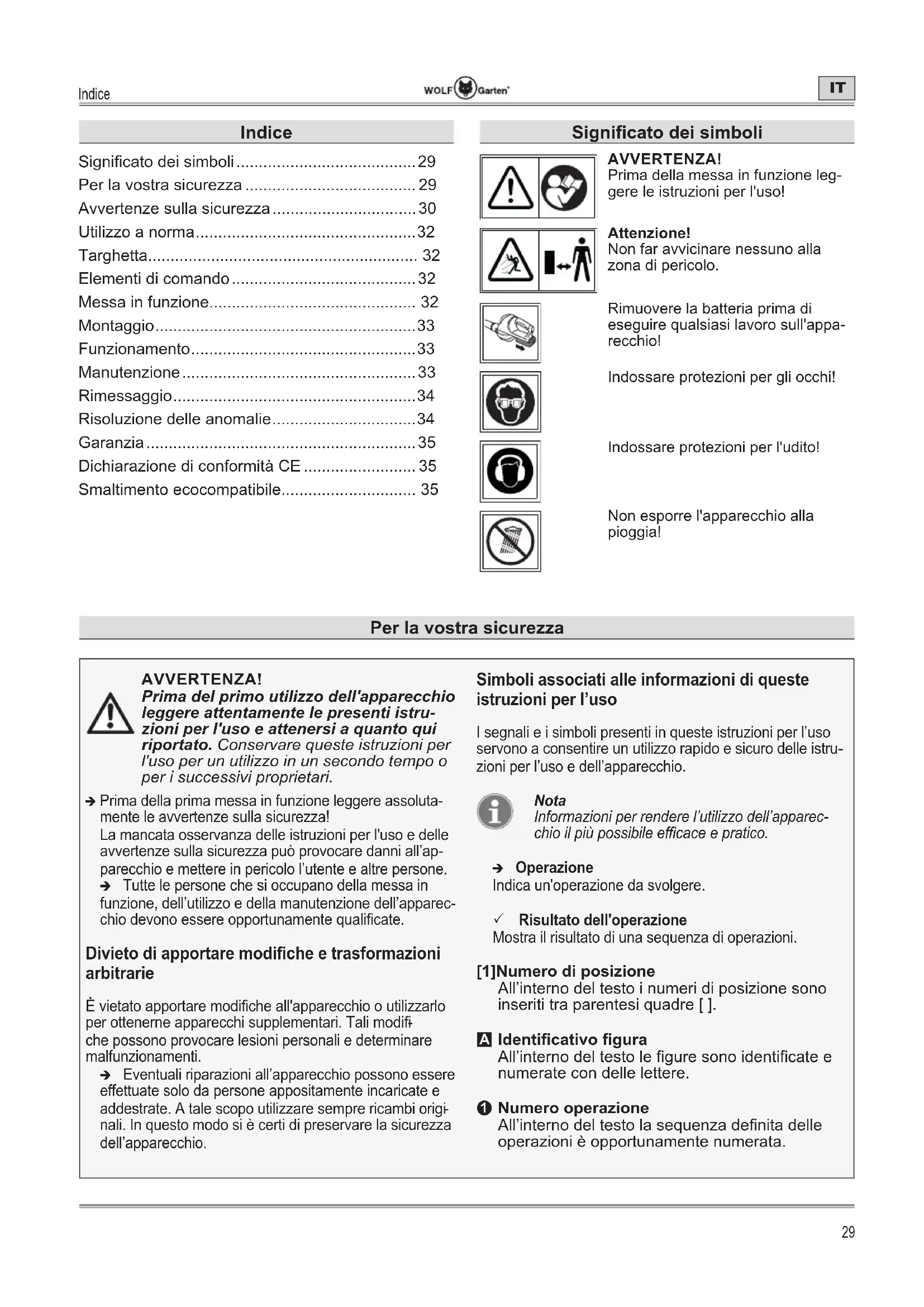 - Per la vostra sicurezza p. 29