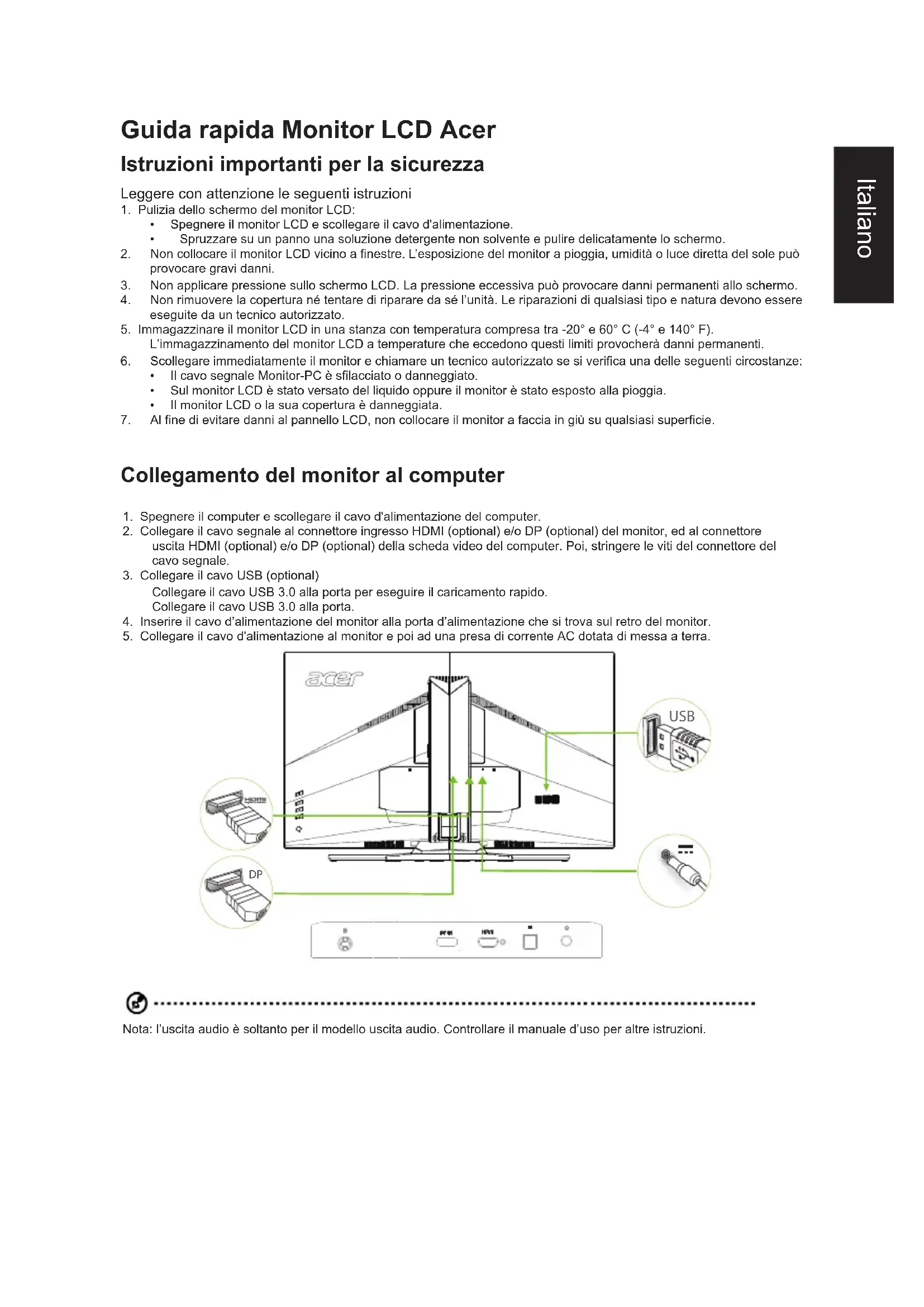 USB Nota: l’uscita audio è soltanto per il modello uscita audio. Controllare il manuale d’uso per altre istruzioni.Italiano