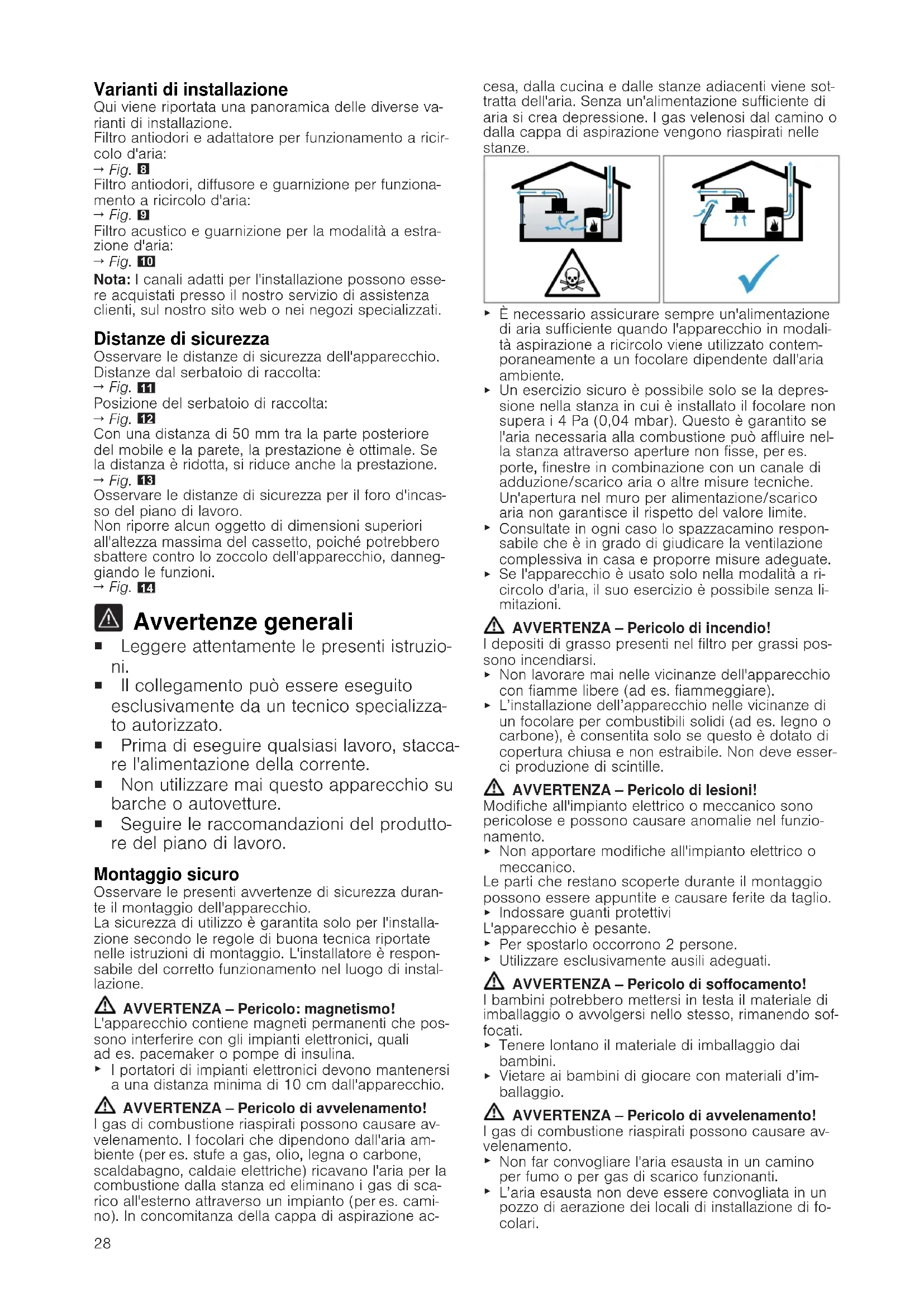 Avvertenze generali ¡ Leggere attentamente le presenti istruzio- ni. ¡ Il collegamento può essere eseguito esclusivamente da un tecnico specializza- to autorizzato. ¡ Prima di eseguire qualsiasi lavoro, stacca- re l'alimentazione della corrente. ¡ Non utilizzare mai questo apparecchio su barche o autovetture. ¡ Seguire le raccomandazioni del produtto- re del piano di lavoro. Montaggio sicuro Osservare le presenti avvertenze di sicurezza duran- te il montaggio dell'apparecchio. La sicurezza di utilizzo è garantita solo per l'installa- zione secondo le regole di buona tecnica riportate nelle istruzioni di montaggio. L'installatore è respon- sabile del corretto funzionamento nel luogo di instal- lazione. AVVERTENZA‒Pericolo: magnetismo! L'apparecchio contiene magneti permanenti che pos- sono interferire con gli impianti elettronici, quali ades. pacemaker o pompe di insulina.
