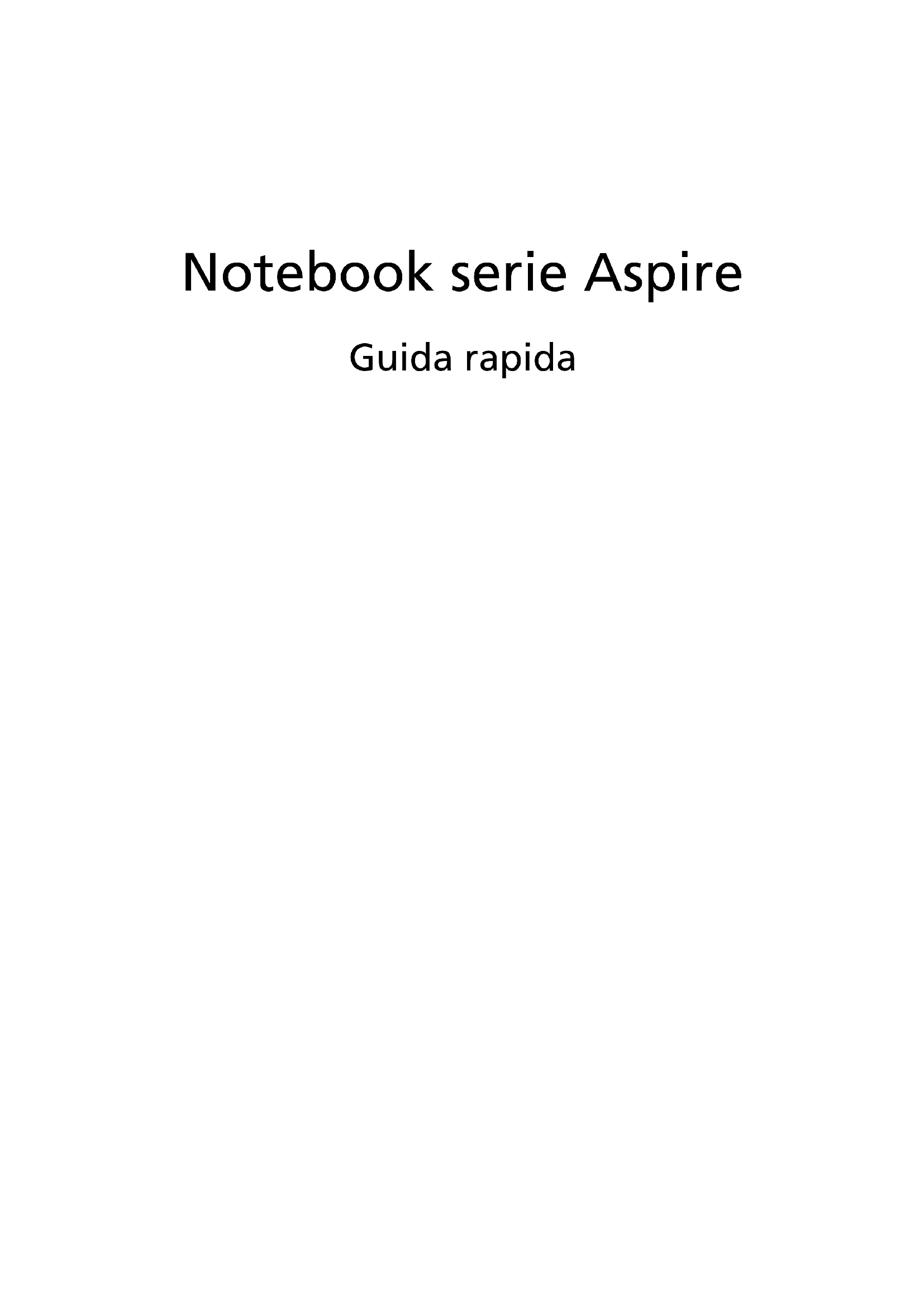 4Notebook serie Aspire Guida rapidaNumero di modello: _______________________________ Numero di serie: ___________________________________ Data di acquisto: __________________________________ Luogo d'acquisto: __________________________________ © 2010 Tutti i diritti riservati. Guida rapida per Notebook serie Aspire Prima edizione: 07/20103 Avvertenze preliminari Grazie per aver scelto il notebook Acer, la scelta ideale per poter lavorare in piena libertà anche in movimento. Le guide disponibili Sono state realizzate delle guide per assistere l’utente nell’uso del notebook Acer: Innanzitutto, il manifesto aiuta a semplificare la cofnigurazione del computer. La Manuale utente generale Aspire contiene informazioni utili per tutti i modelli della serie Aspire. Copre gli argomenti base come ad esempio l’uso della tastiera, audio, ecc. A causa della sua natura, la Manale utente generale cosi come il AcerSystem User Guide menzionata in precedenza a volte fa riferimento a funzioni o caratteristiche presenti solamente in alcuni modelli della serie, ma non necessariamente del modello acquistato. Per questo motivo alcuni elementi nel testo sono indicati con "solo per alcuni modelli". Guida rapida vi presenta le caratteristiche e le funzioni principali del vostro nuovo computer. Per altre nozioni su come il vostro computer può aiutarvi a diventare ancora più produttivi, consultate la AcerSystem User Guide. Questa guida contiene informazioni dettagliate su argomenti come utilità del sistema, ripristino dei dati, opzioni di espansione e ricerca guasti. In aggiunta contiene le informazioni sulla garanzia e i regolamenti generali e le avvertenze per la sicurezza del vostro notebook. È disponibile nel formato PDF (Portable Document Format) e viene fornita già caricata nel notebook. Per accedervi seguite questi passaggi: 1 Fare clic su Start > Programmi > AcerSystem. 2 Fare clic su AcerSystem User Guide. Nota: Per visualizzare il file, è necessario che sul computer sia installato Adobe Reader. Se Adobe Acrobat Reader non è installato sul computer, fare clic su AcerSystem User Guide per eseguire il programma di installazione di Adobe Reader. Per completare l'installazione, attenersi alle istruzioni visualizzate sullo schermo. Per istruzioni sull'uso di Adobe Reader, consultare il menu Guida in linea e supporto tecnico.4 Italiano Presentazione del notebook Acer Dopo aver configurato il computer come illustrato nel foglietto di istruzioni relative alla configurazione, far riferimento alla presente documentazione per la presentazione del nuovo notebook Acer. Vista dall’alto
