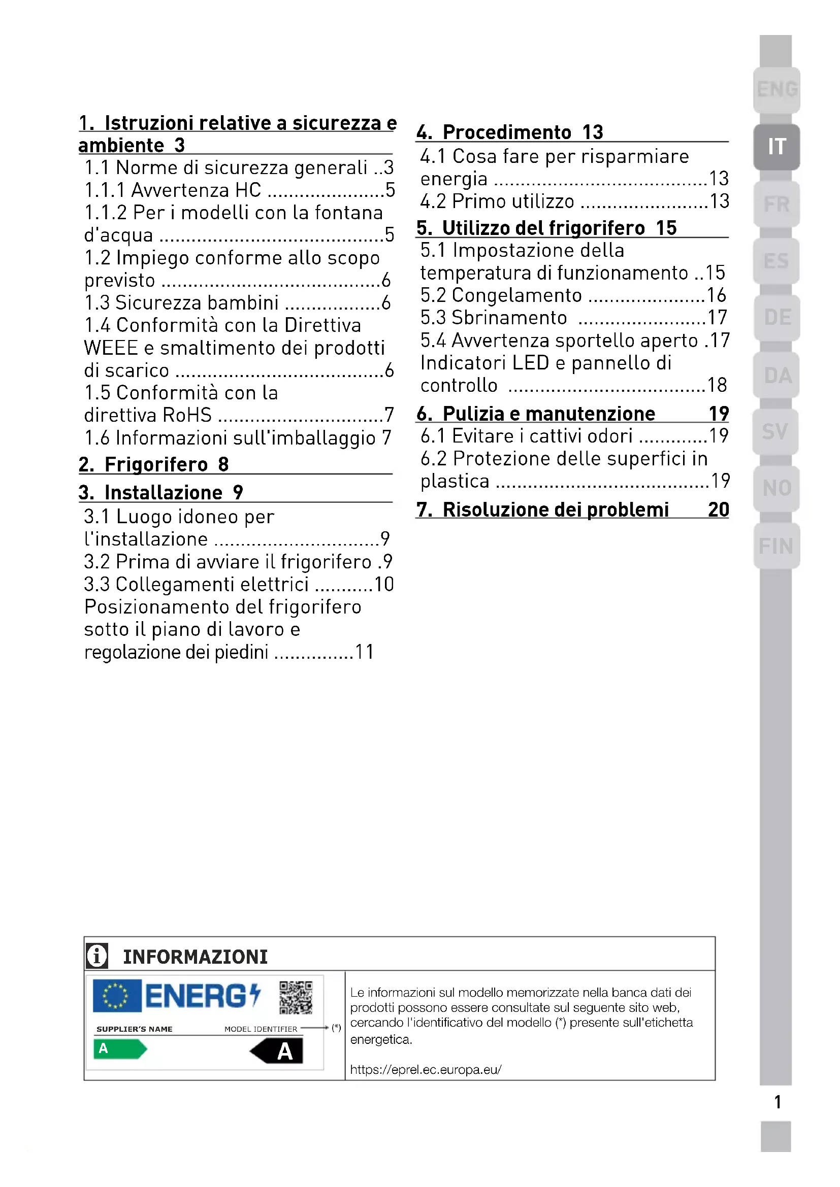 5. Utilizzo del frigorifero 15