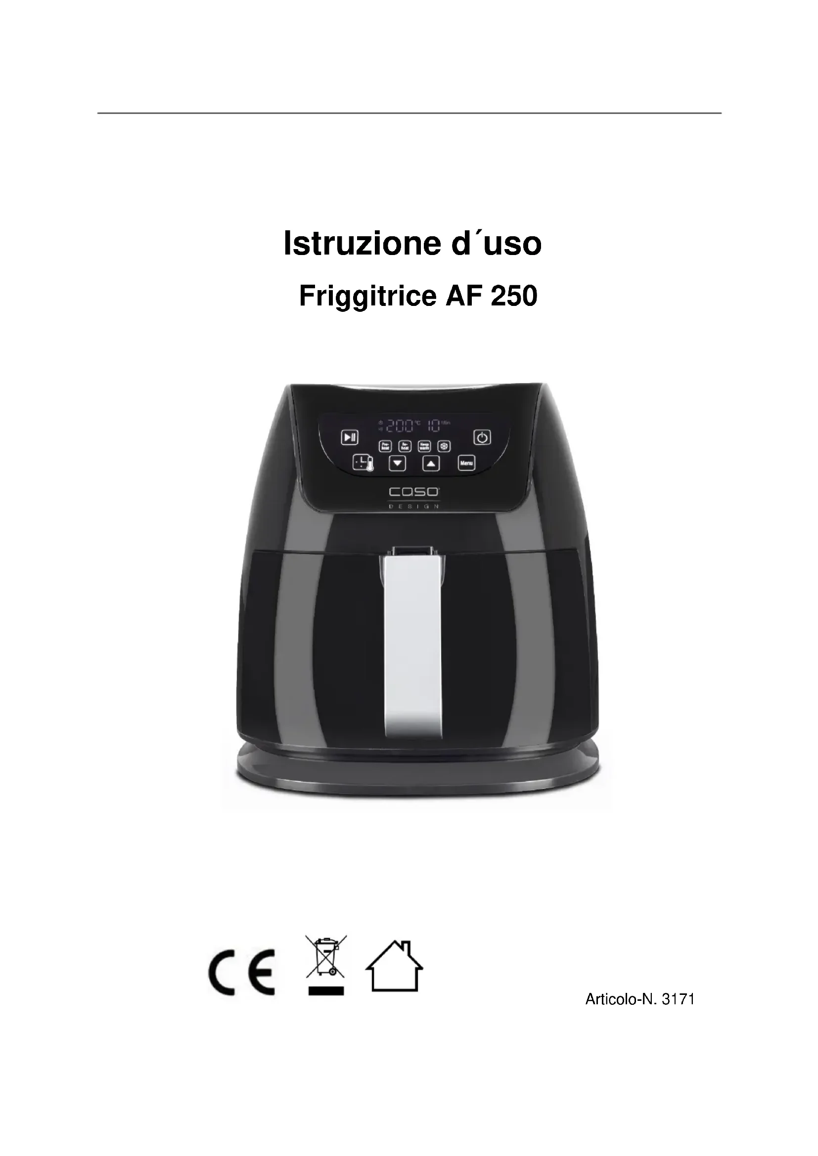 Scarica le istruzioni per il tuo Friggitrice in formato PDF gratuitamente! Trova il tuo manuale AF 250 - CASO e riprendi in mano il tuo dispositivo elettronico. In questa pagina sono pubblicati tutti i documenti necessari per l'utilizzo del tuo dispositivo. AF 250 del marchio CASO.