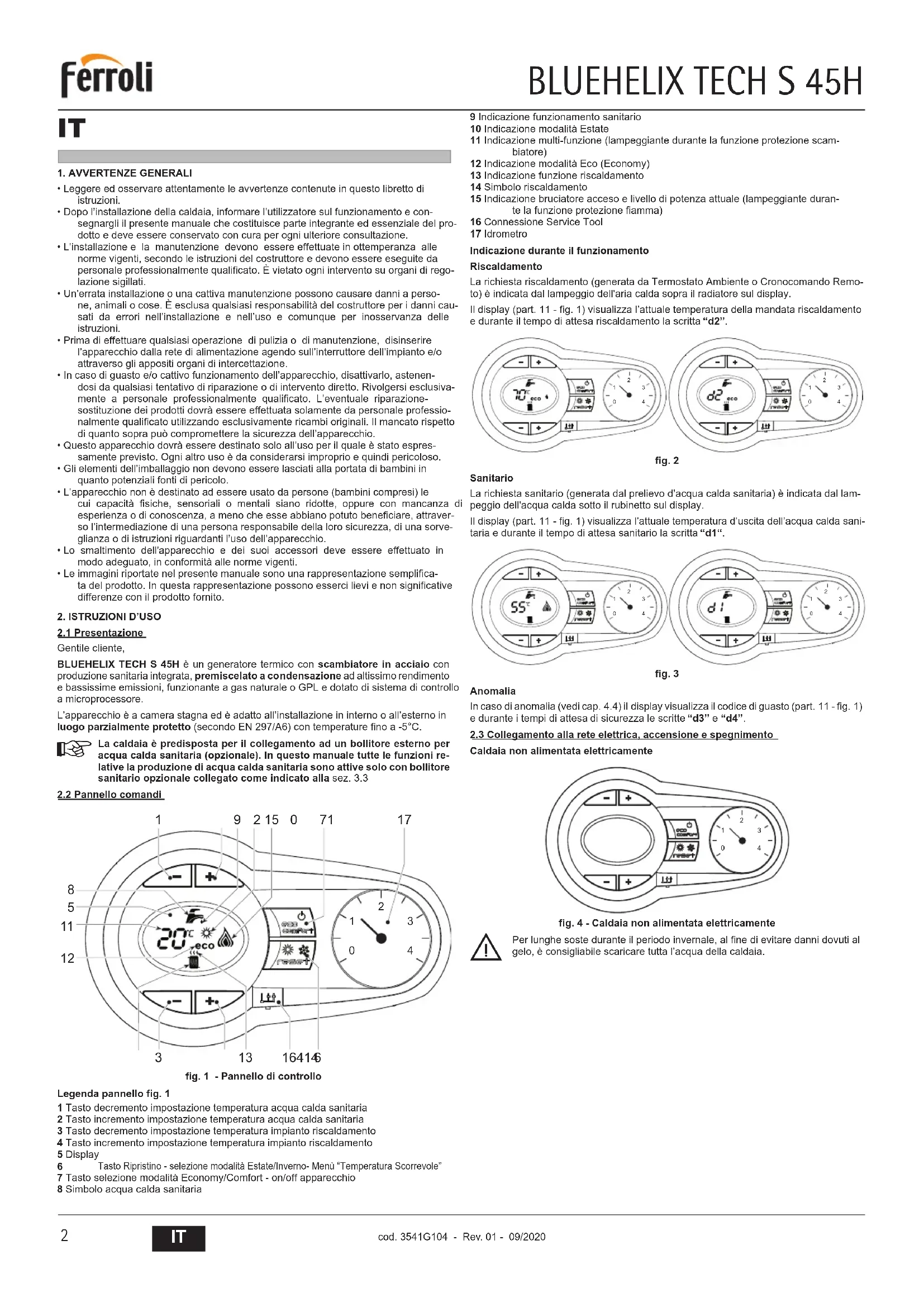 Bluehelix Tech S 45 H - Caldaia di riscaldamento centralizzato FERROLI - Manuale utente e istruzioni gratuiti