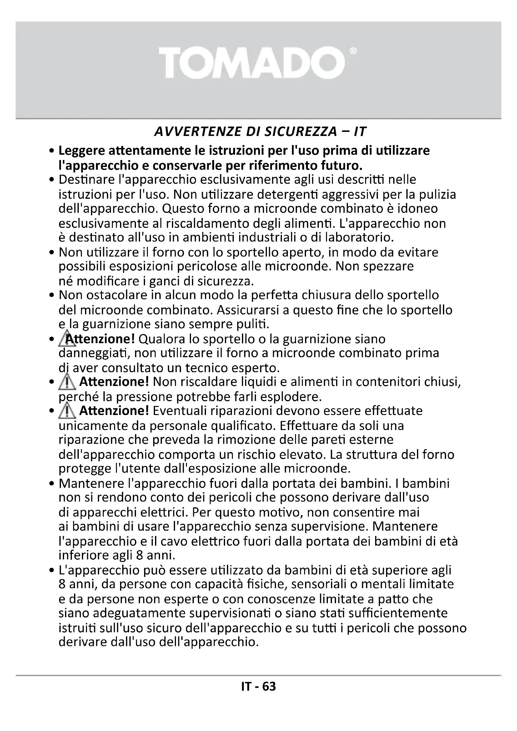 TMC2501S - Microonde Tomado - Manuale utente e istruzioni gratuiti