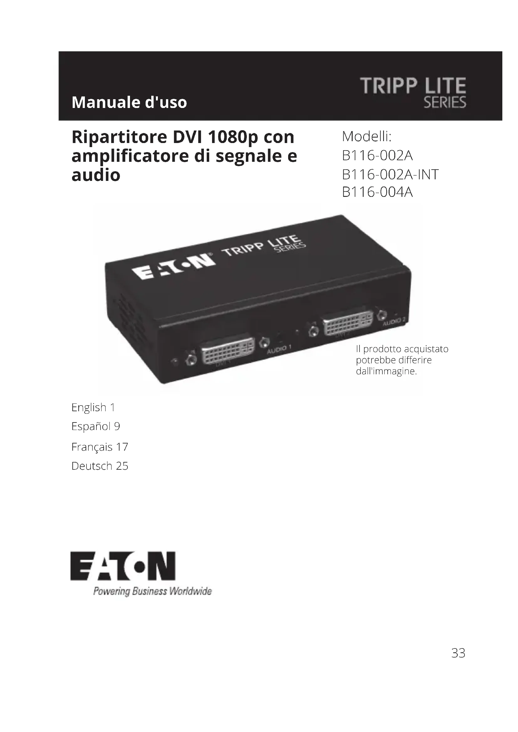 B116-004A Ripartitore DVI 1080p con amplificatore di segnale e audio English 1 Español 9 Français 17 Deutsch 2534