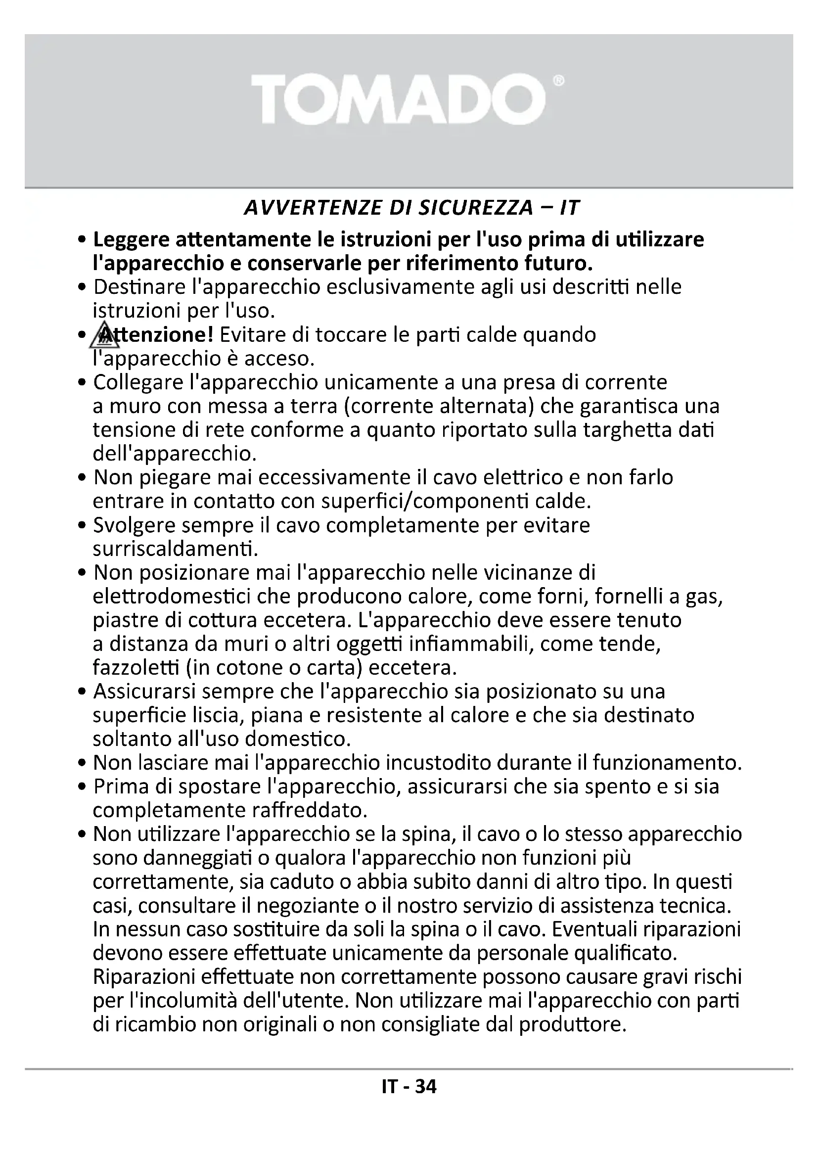 AVVERTENZE DI SICUREZZA – IT