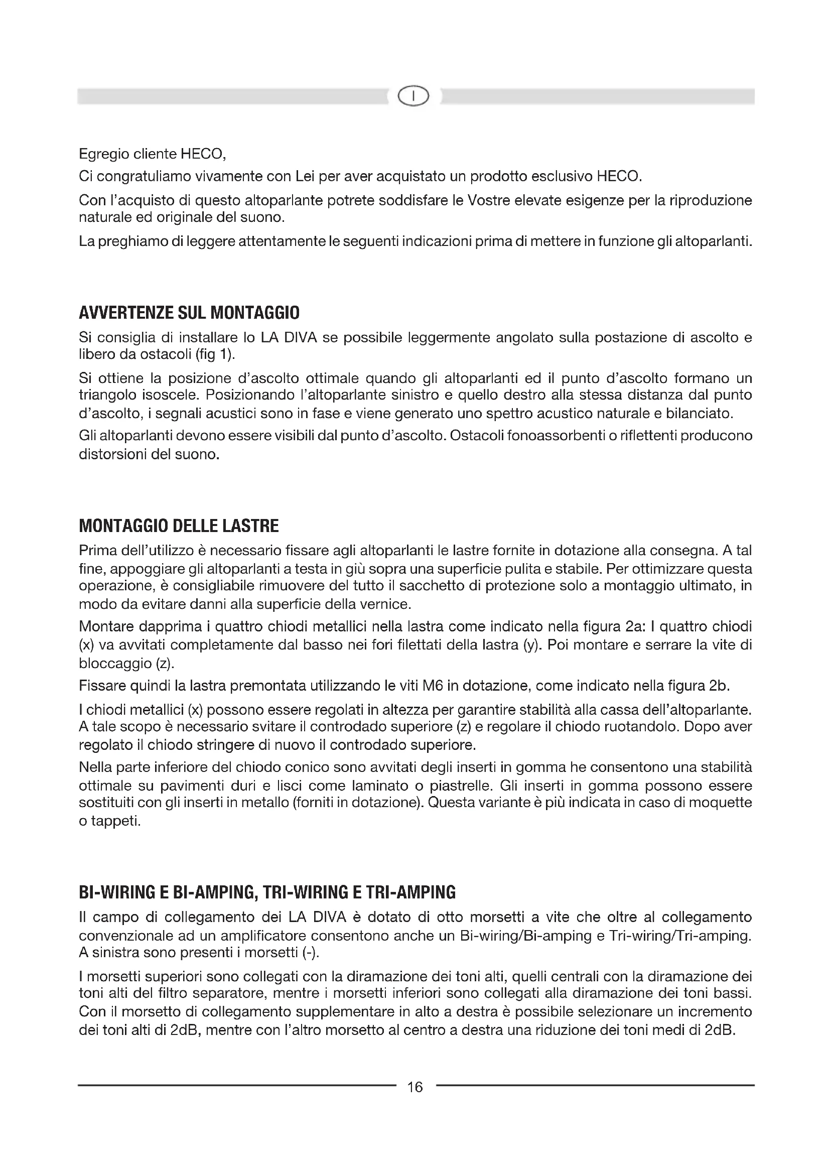 COLLEGAMENTO DEGLI ALTOPARLANTI HECO LA DIVA