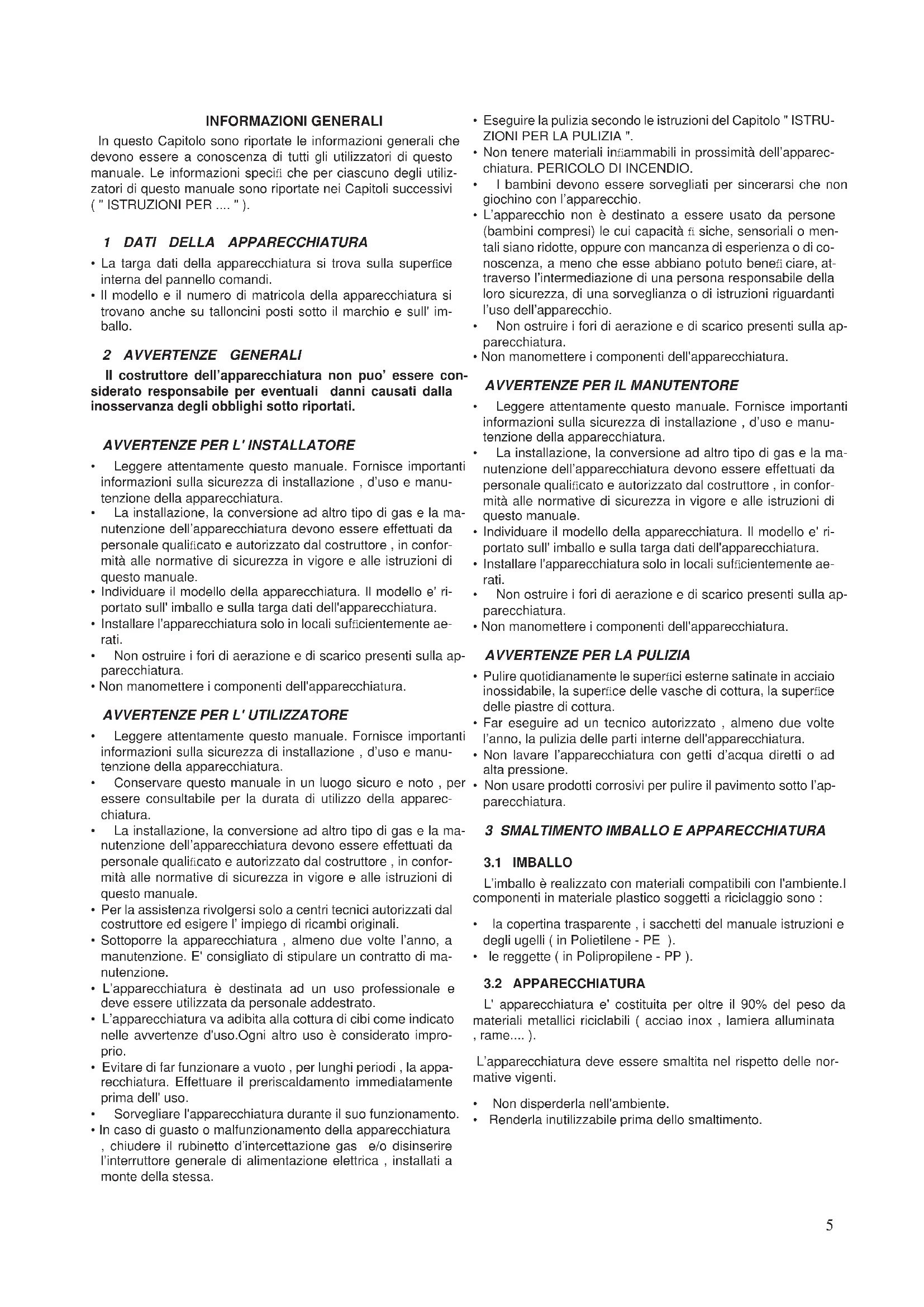 - L’apparecchiatura va adibita alla cottura di cibi come indicato nelle avvertenze d'uso.Ogni altro uso è considerato impro- prio.