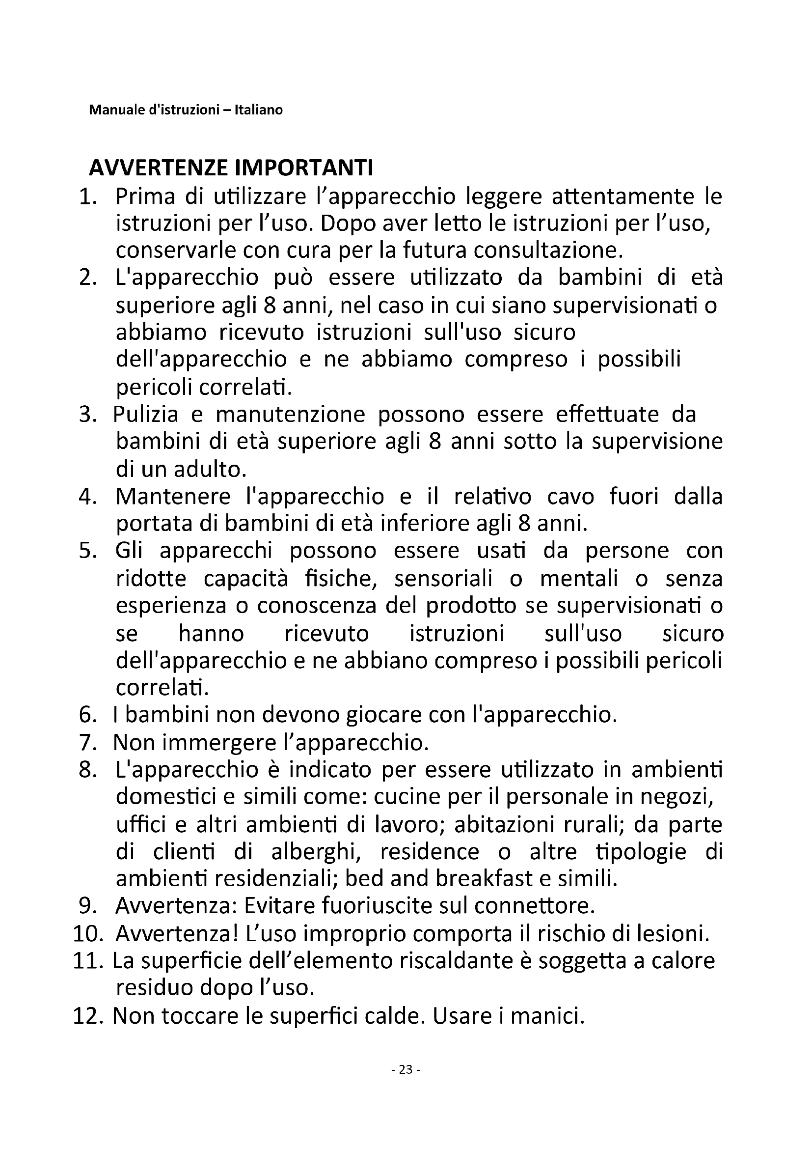 24. Non utilizzare l'apparecchio per usi diversi da quelli