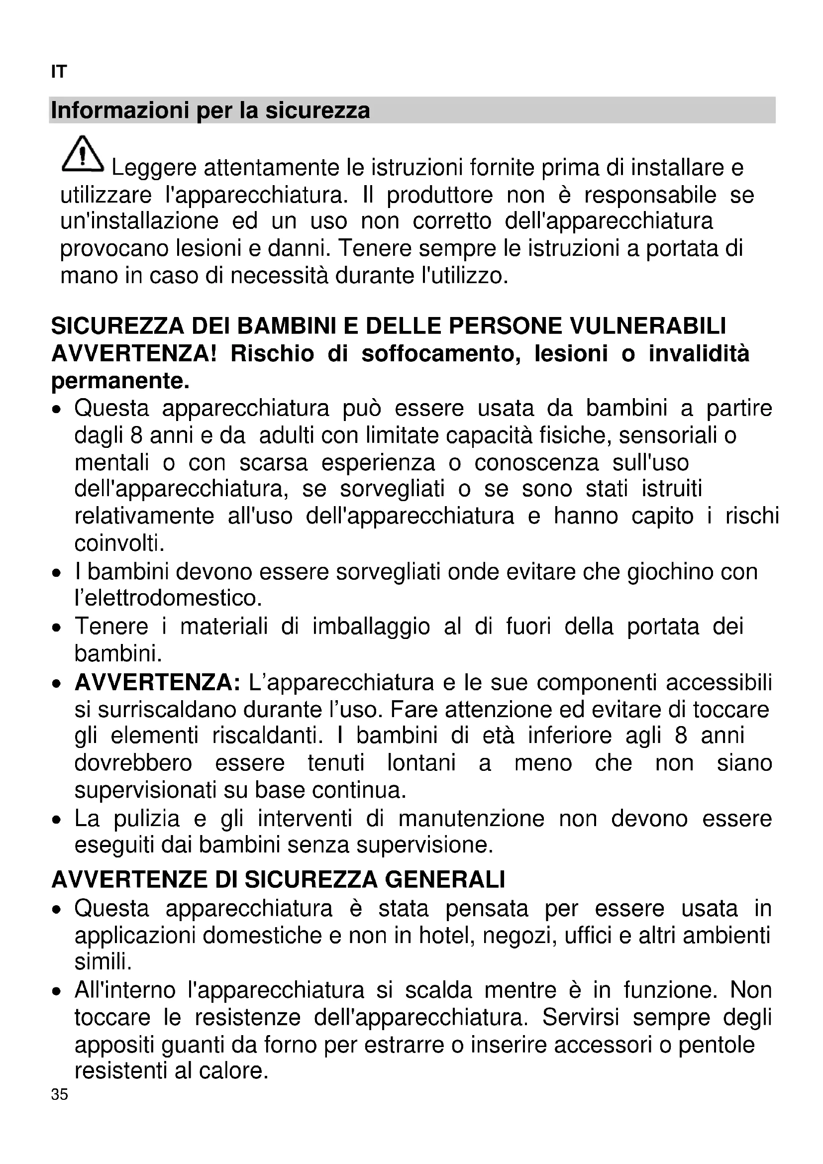 - I bambini devono essere sorvegliati onde evitare che giochino con l’elettrodomestico.
