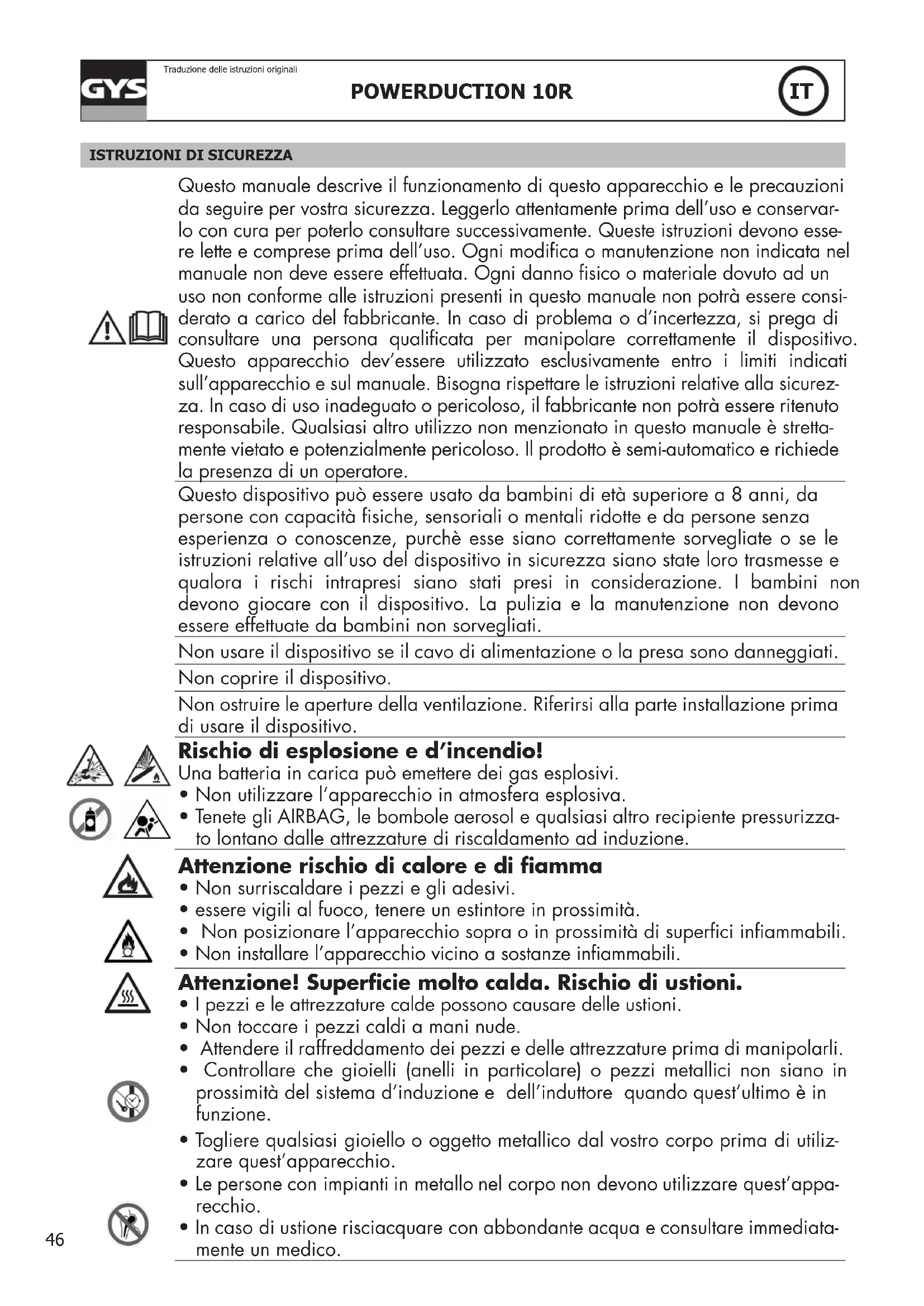 Scarica le istruzioni per il tuo Cucina in formato PDF gratuitamente! Trova il tuo manuale Powerduction 10R PRO - GYS e riprendi in mano il tuo dispositivo elettronico. In questa pagina sono pubblicati tutti i documenti necessari per l'utilizzo del tuo dispositivo. Powerduction 10R PRO del marchio GYS.