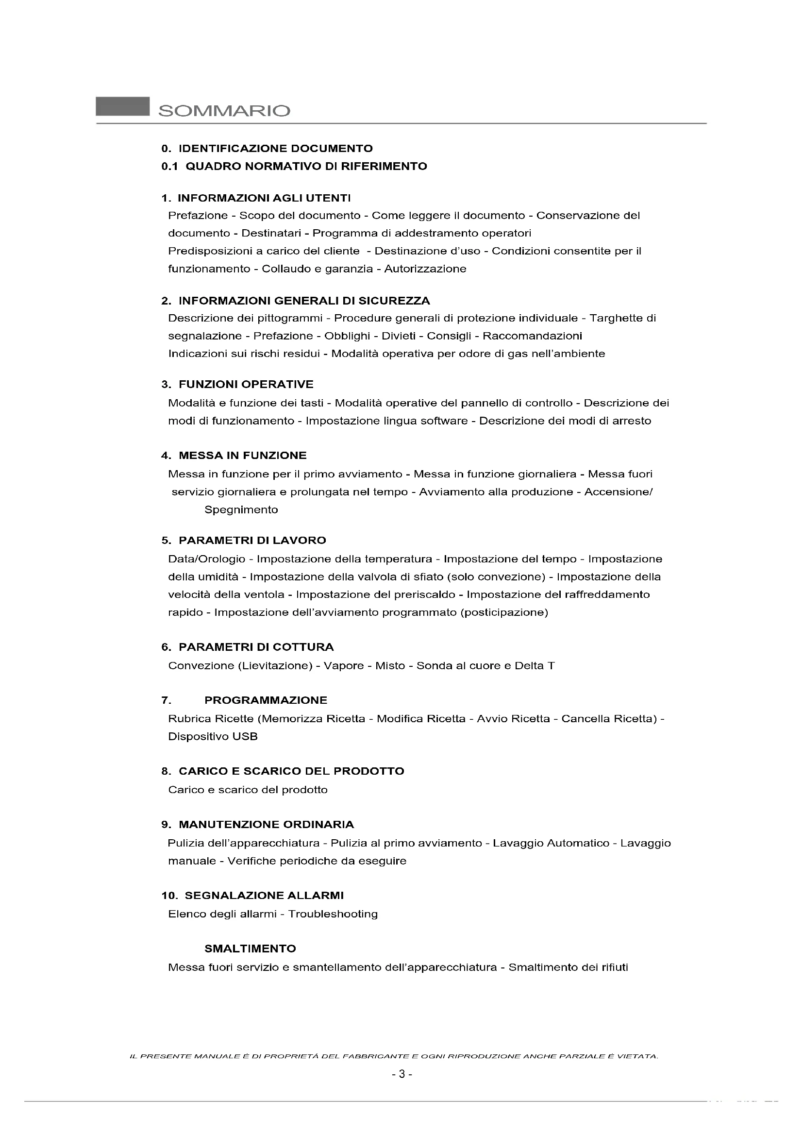 N° 184918 Rev. 5 - 02/2019- 3 - SOMMARIO IL PRESENTE MANUALE È DI PROPRIETÀ DEL FABBRICANTE E OGNI RIPRODUZIONE ANCHE PARZIALE È VIETATA.