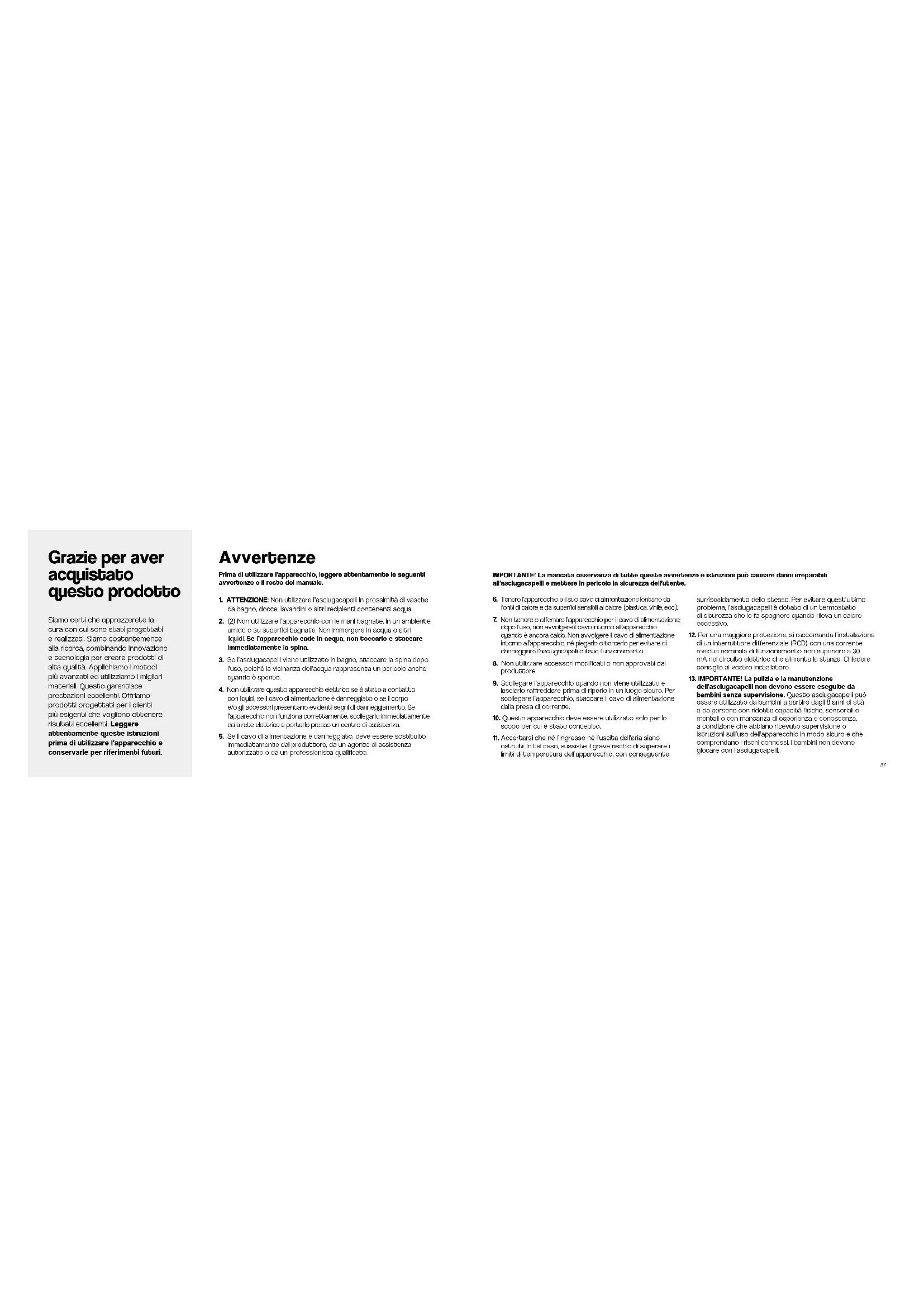 immediatamente dal produttore, da un agente di assistenza autorizzato o da un professionista qualificato. Siamo certi che apprezzerete la cura con cui sono stati progettati e realizzati. Siamo costantemente alla ricerca, combinando innovazione e tecnologia per creare prodotti di alta qualità. Applichiamo i metodi più avanzati ed utilizziamo i migliori materiali. Questo garantisce prestazioni eccellenti. Offriamo prodotti progettati per i clienti più esigenti che vogliono ottenere risultati eccellenti. Leggere attentamente queste istruzioni prima di utilizzare l’apparecchio e conservarle per riferimenti futuri. Prima di utilizzare l’apparecchio, leggere attentamente le seguenti avvertenze e il resto del manuale.