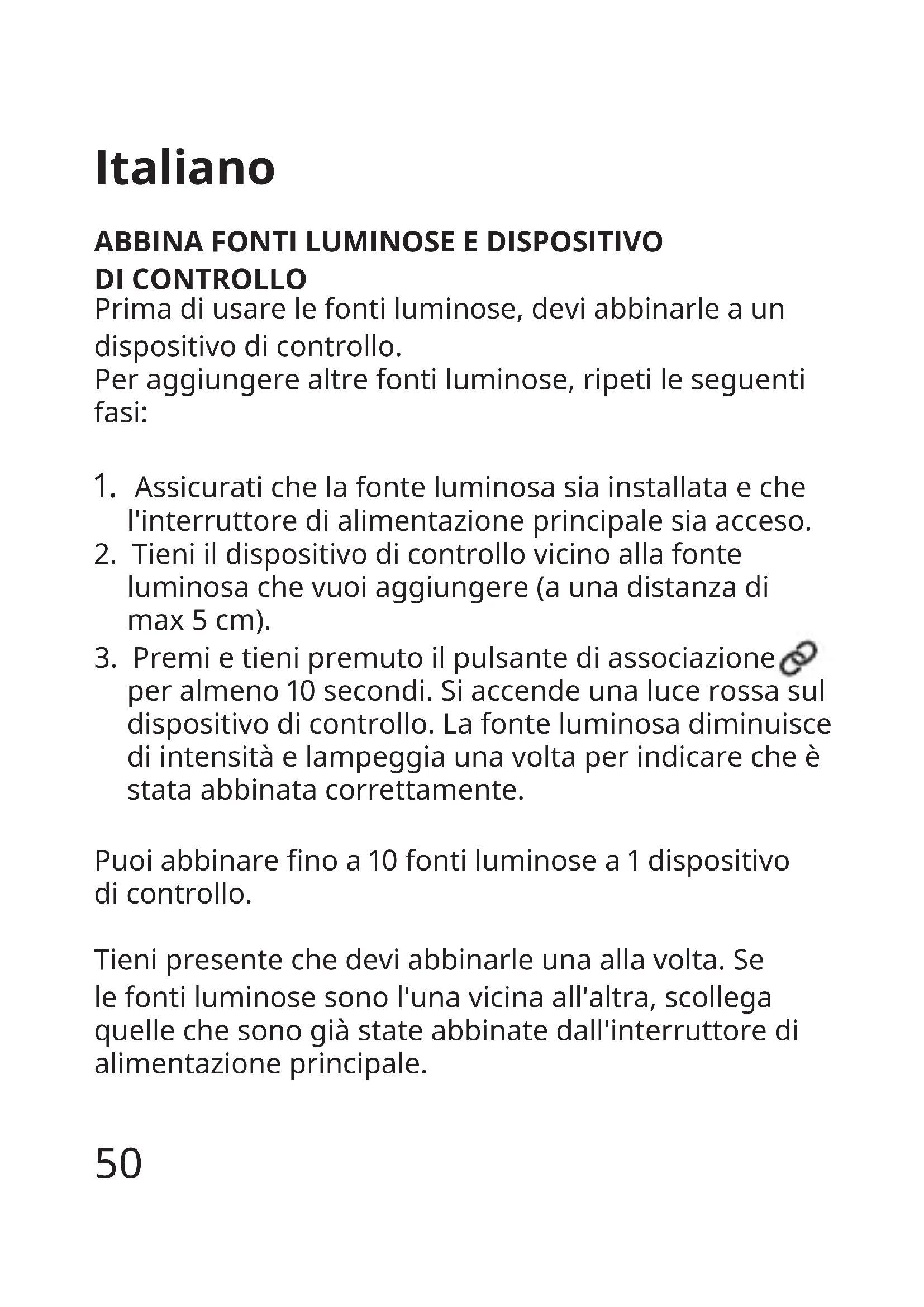 DI CONTROLLO Prima di usare le fonti luminose, devi abbinarle a un dispositivo di controllo. Per aggiungere altre fonti luminose, ripeti le seguenti fasi: