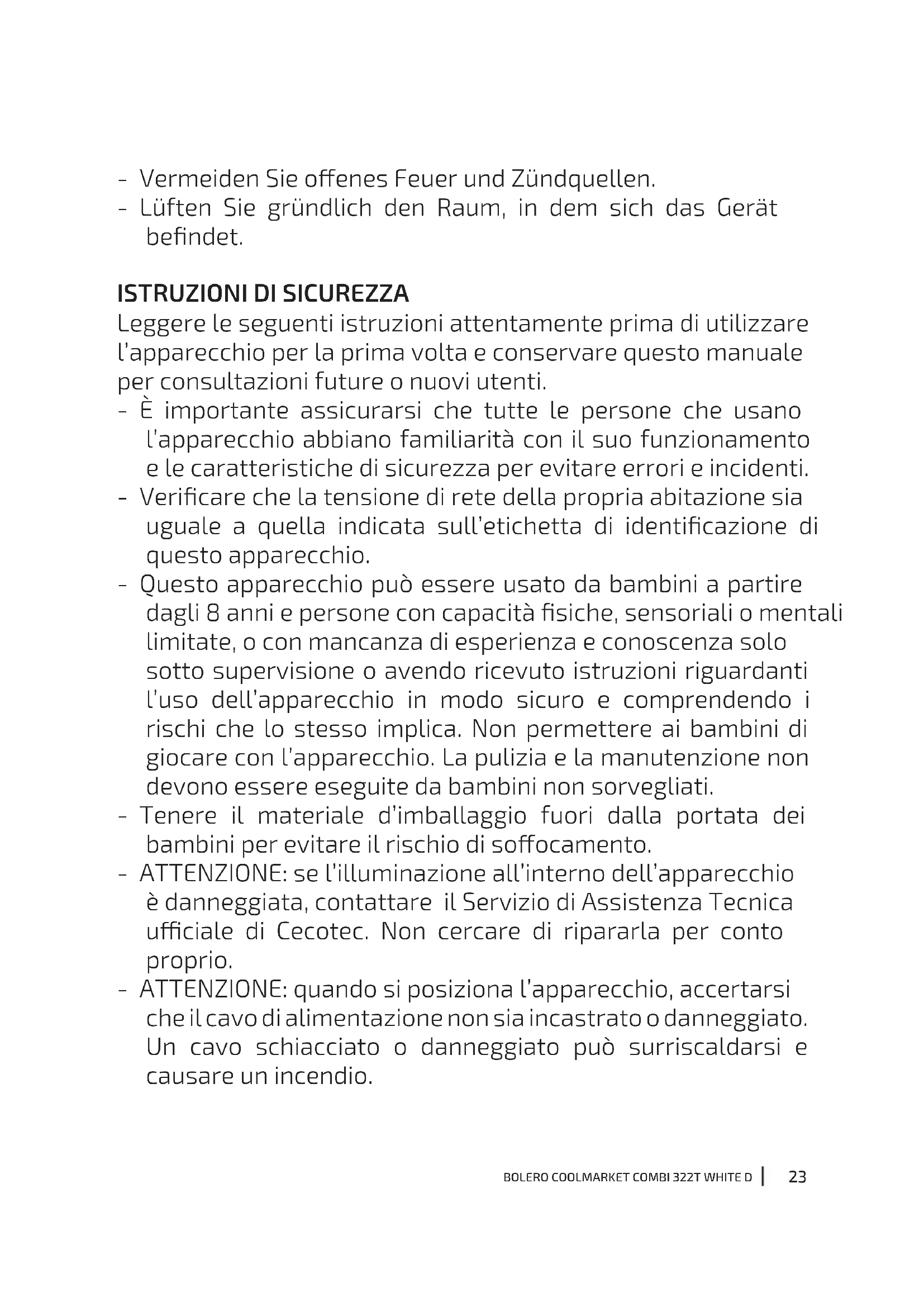 MANUALE UTENTE Bolero CoolMarket Combi 322T CECOTEC