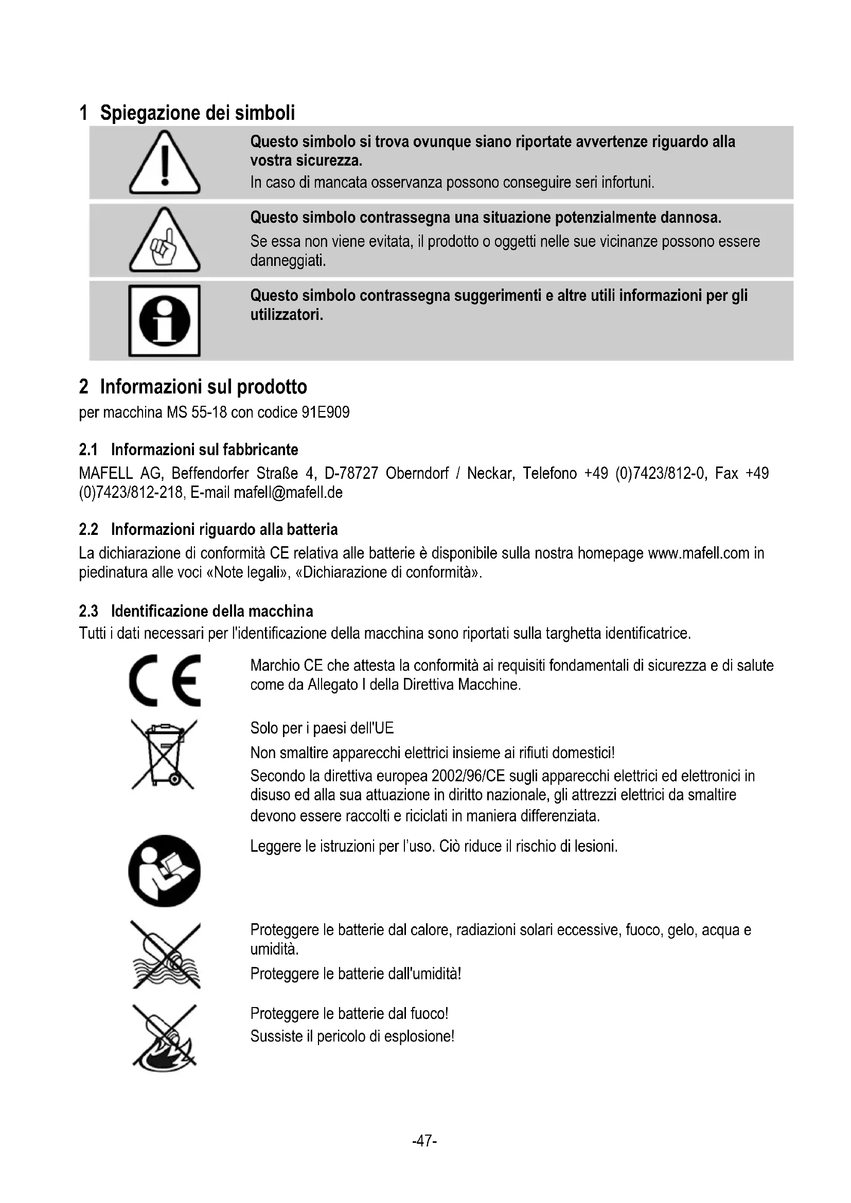 Proteggere le batterie dal fuoco! Sussiste il pericolo di esplosione!-48-