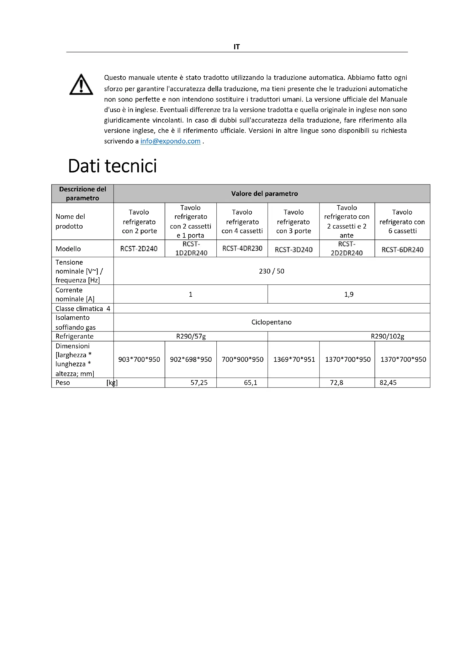 Questo manuale utente è stato tradotto utilizzando la traduzione automatica. Abbiamo fatto agli sforzo per garantire l'accuratezza della traduzione, ma tiani presente che le traduzioni automatiche non sono perfette e non intendono sostituire i traduttori umani. La versione ufficiale del Manuale d'uso è in inglese. Eventuali differenze tra la versione tradotta e quella originale in inglese non sono giuridicamente vincolanti. In caso di dubbi sull'accuratezza della traduzione, fare riferimento alla versione inglese, che è il riferimento ufficiale. Versioni in altre lingue sono disponibili su richiesta scrivendo a info@expondo.com.