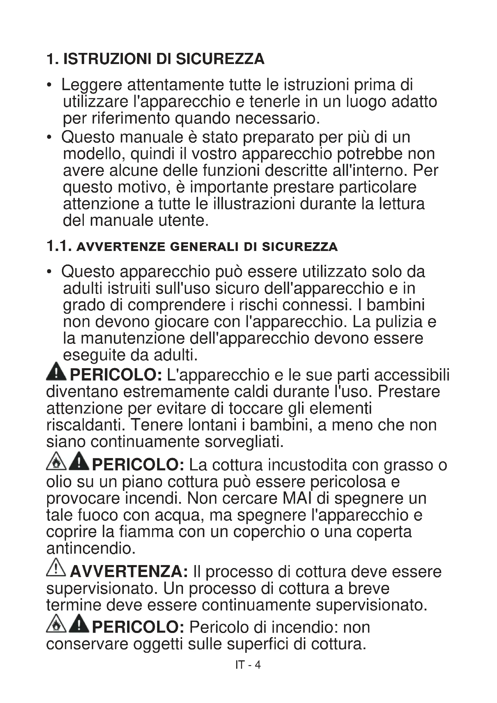 1.1. Avvertenze generali di sicurezza