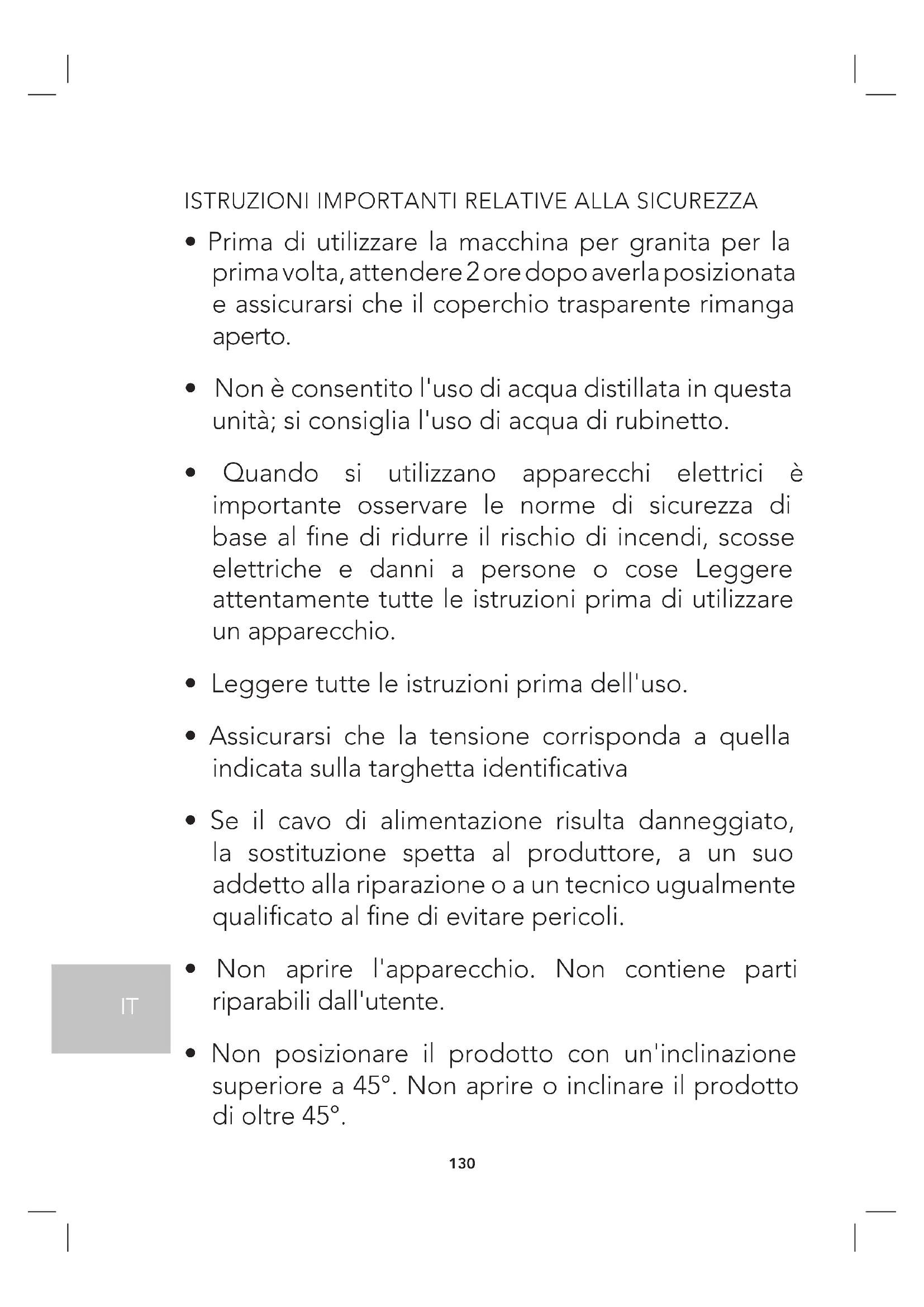 - Quando si utilizzano apparecchi elettrici è importante osservare le norme di sicurezza di base al fine di ridurre il rischio di incendi, scosse elettriche e danni a persone o cose Leggere attentamente tutte le istruzioni prima di utilizzare un apparecchio.