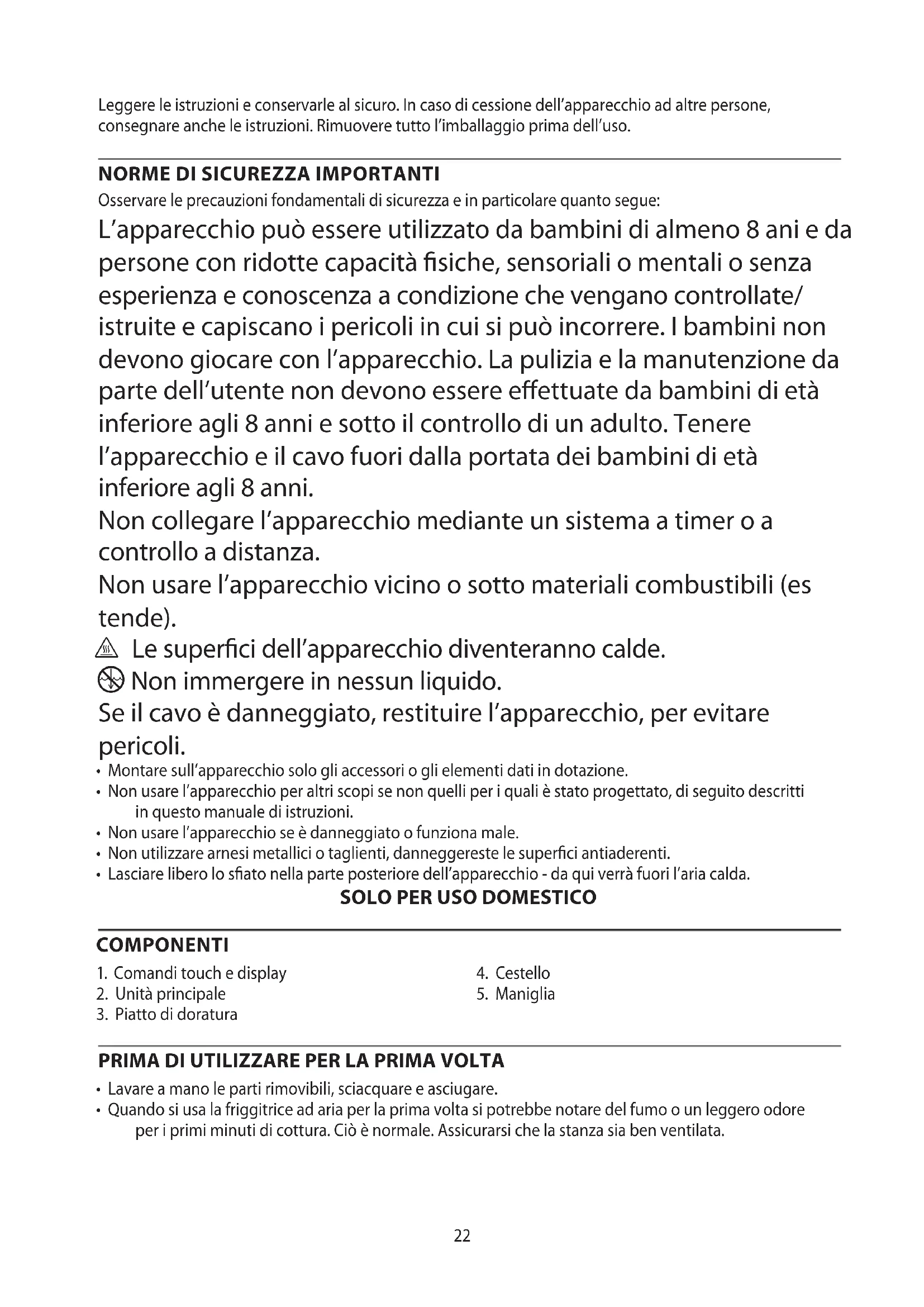 AE22 Leggere le istruzioni e conservarle al sicuro. In caso di cessione dell’apparecchio ad altre persone, consegnare anche le istruzioni. Rimuovere tutto l’imballaggio prima dell’uso.