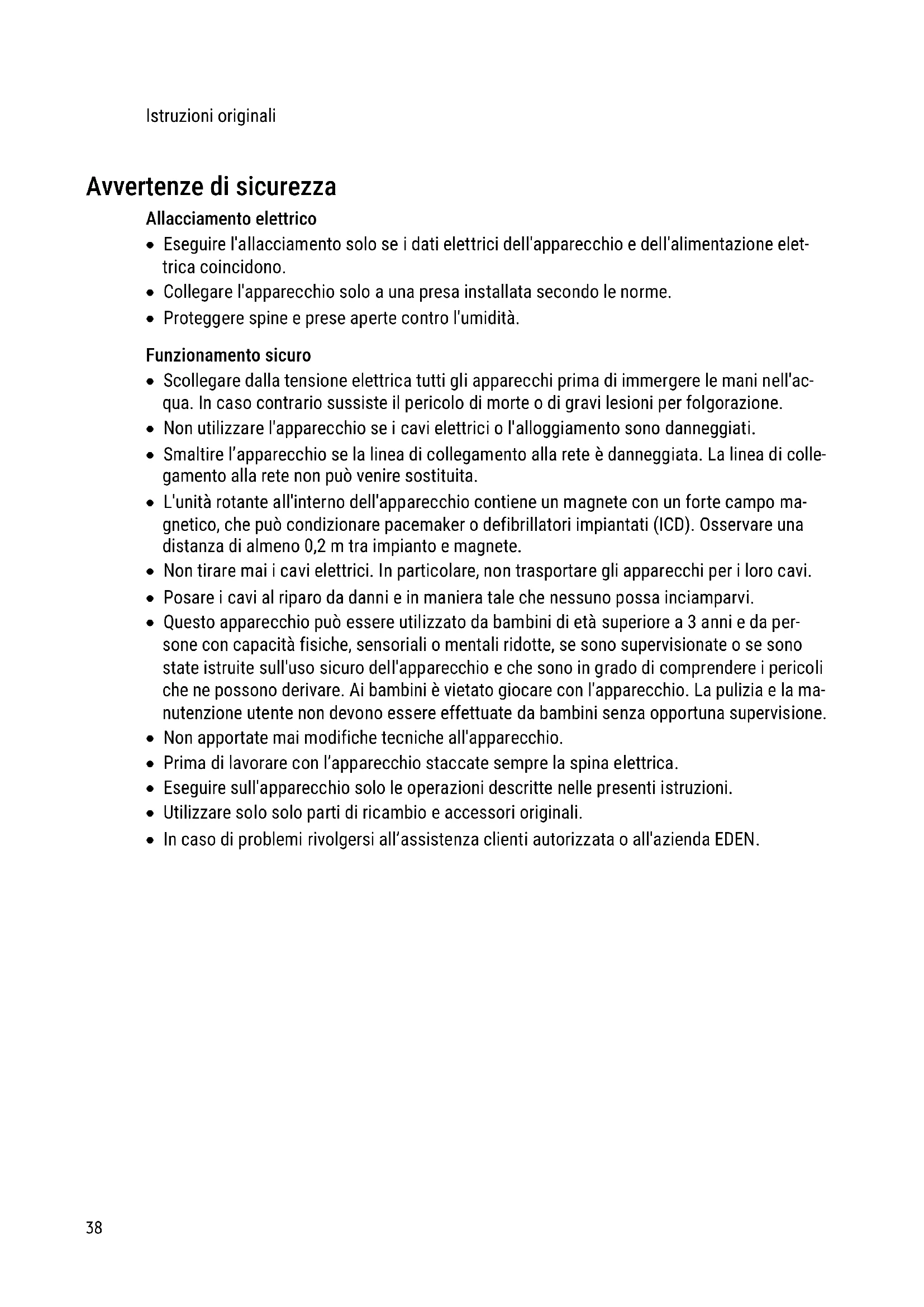 - In caso di problemi rivolgersi all’assistenza clienti autorizzata o all'azienda EDEN.DE