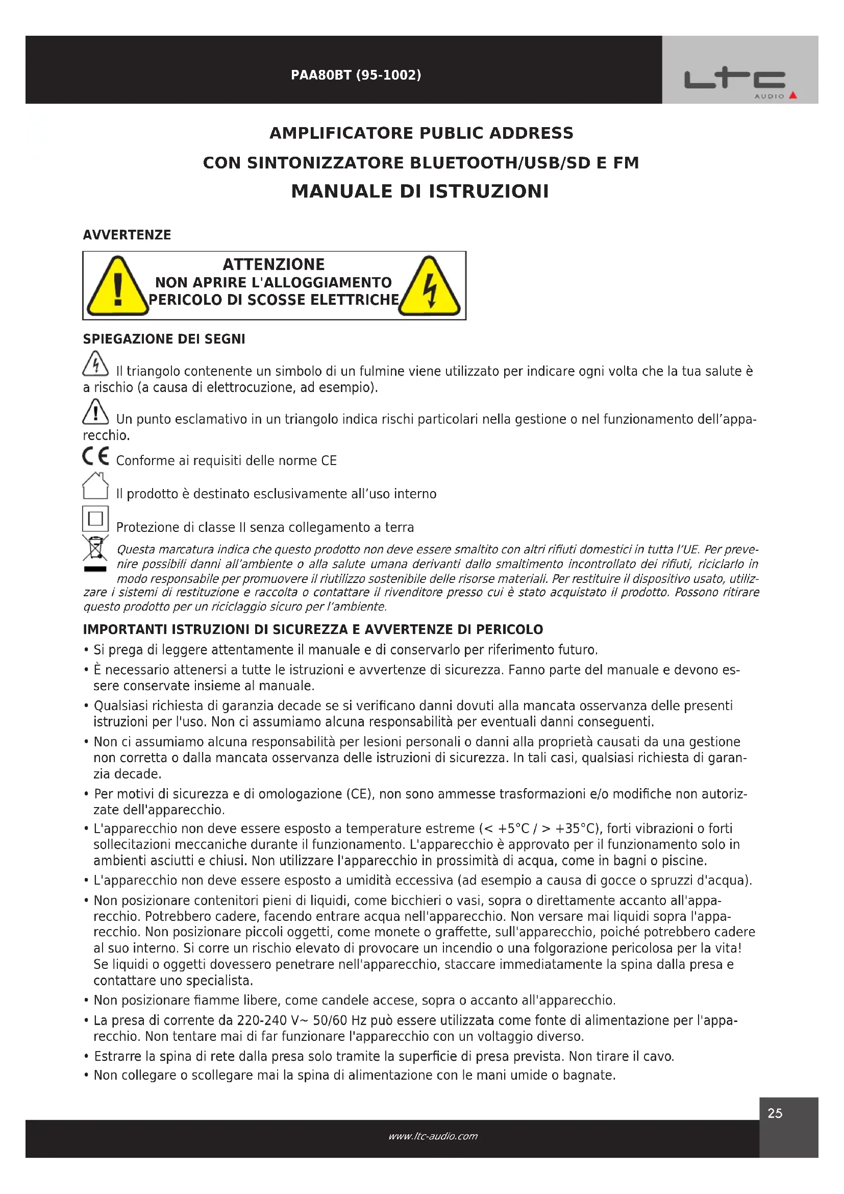 MANUALE UTENTE PAA80BT LTC