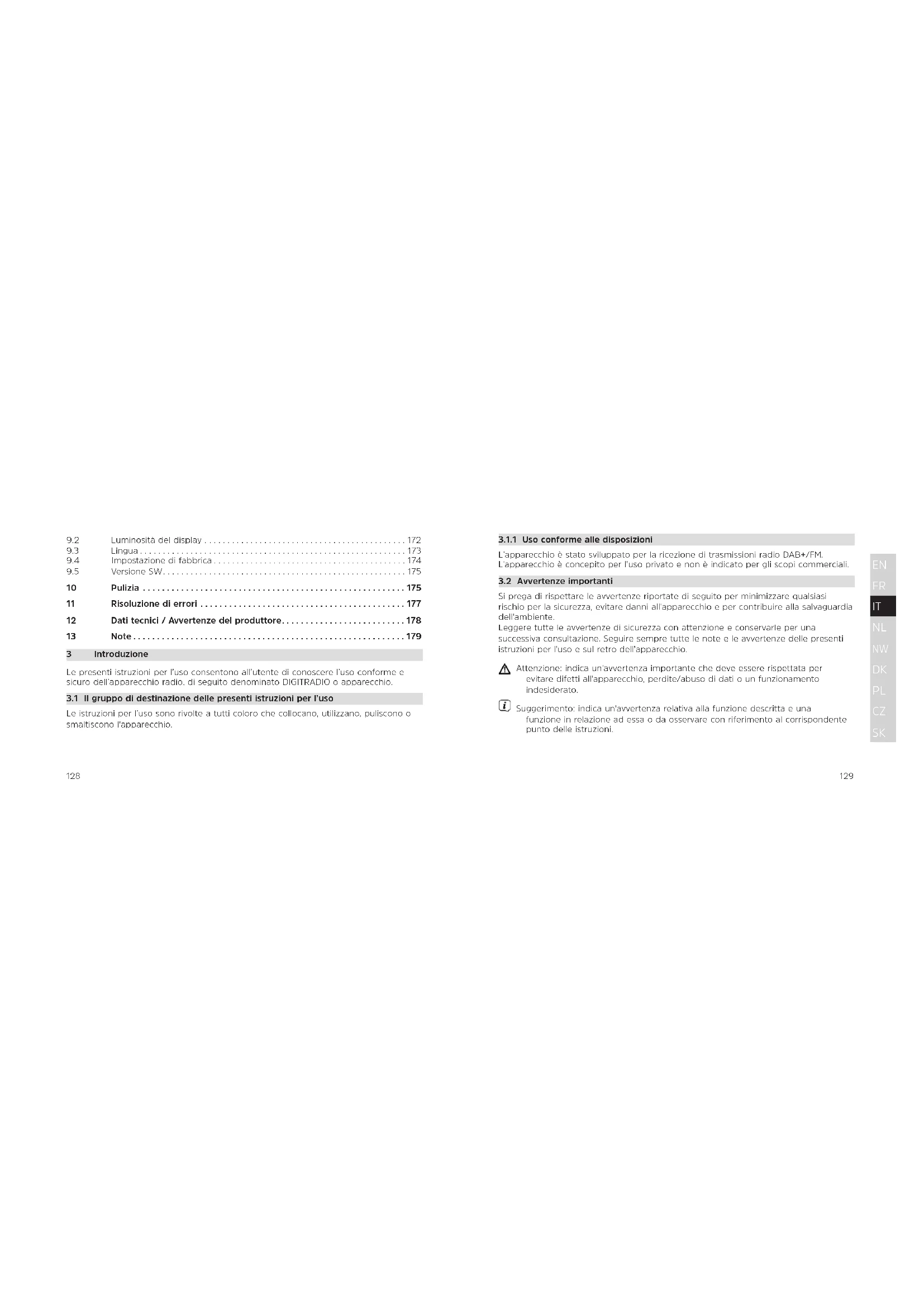 Le istruzioni per l’uso sono rivolte a tutti coloro che collocano, utilizzano, puliscono o smaltiscono l'apparecchio. BDA DigitRadio 1.indd 128-129 16/04/2018 16:41130