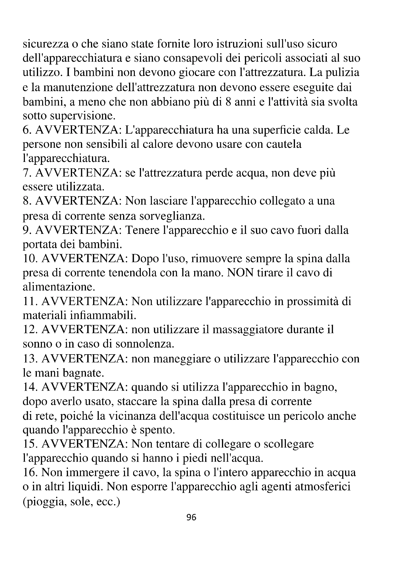 12. AVVERTENZA: non utilizzare il massaggiatore durante il