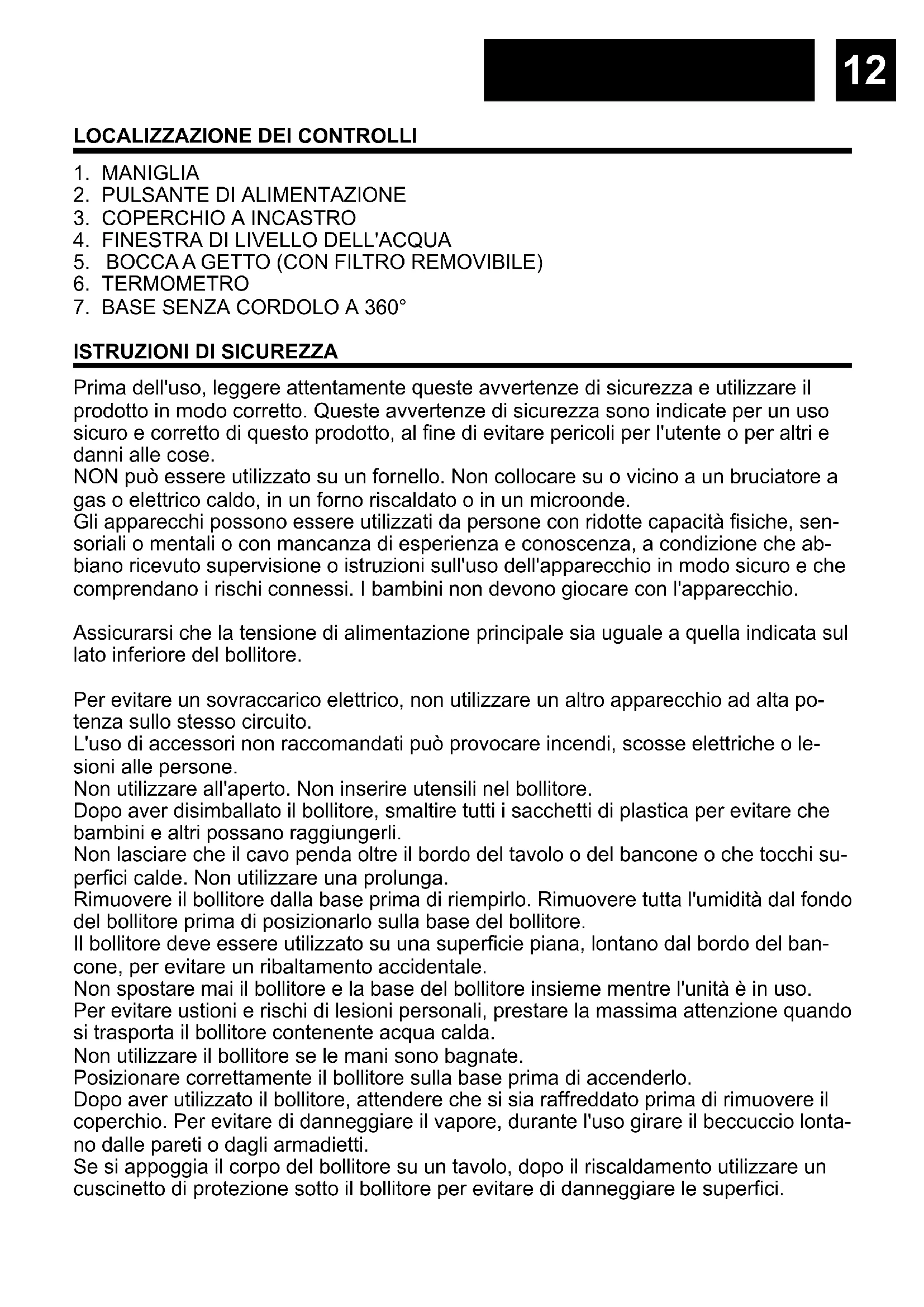 PRIMA DI UTILIZZARE IL BOLLITORE