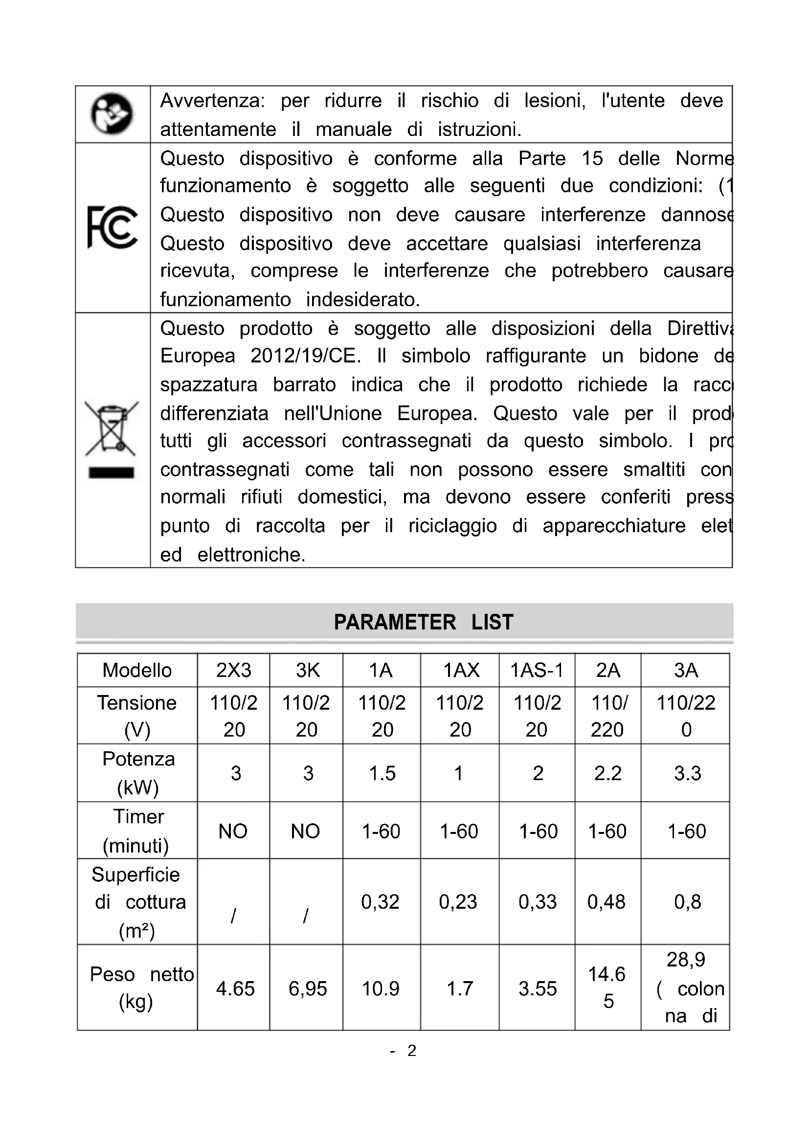 MODELLO: 2X3、3K、1A、1AX、1AS-1、2A、3A We continue to be committed to provide you tools with competitive price. "Save Half", "Half Price" or any other similar expressions used by us only represents an estimate of savings you might benefit from buying certain tools with us compared to the major top brands and does not necessarily mean to cover all categories of tools offered by us. You are kindly reminded to verify carefully when you are placing an order with us if you are actually saving half in comparison with the top major brands.- 1 - MODELLO: 2X3、3K、1A、1AX、1AS-1、2A、3A Have product questions? Need technical support? Please feel free to contact us: Technical Support and E-Warranty Certificate www.vevor.com/support NEED HELP? CONTACT US! This is the original instruction, please read all manual instructions carefully before operating. VEVOR reserves a clear interpretation of our user manual. The appearance of the product shall be subject to the product you received. Please forgive us that we won't inform you again if there are any technology or software updates on our product. Infrared Paint Lamp- 2 - Avvertenza: per ridurre il rischio di lesioni, l'utente deve leggere attentamente il manuale di istruzioni. Questo dispositivo è conforme alla Parte 15 delle Norme FCC. Il funzionamento è soggetto alle seguenti due condizioni: (1) Questo dispositivo non deve causare interferenze dannose e (2) Questo dispositivo deve accettare qualsiasi interferenza ricevuta, comprese le interferenze che potrebbero causare un funzionamento indesiderato. Questo prodotto è soggetto alle disposizioni della Direttiva Europea 2012/19/CE. Il simbolo raffigurante un bidone della spazzatura barrato indica che il prodotto richiede la raccolta differenziata nell'Unione Europea. Questo vale per il prodotto e tutti gli accessori contrassegnati da questo simbolo. I prodotti contrassegnati come tali non possono essere smaltiti con i normali rifiuti domestici, ma devono essere conferiti presso un punto di raccolta per il riciclaggio di apparecchiature elettriche ed elettroniche. PARAMETER LIST Modello 2X3