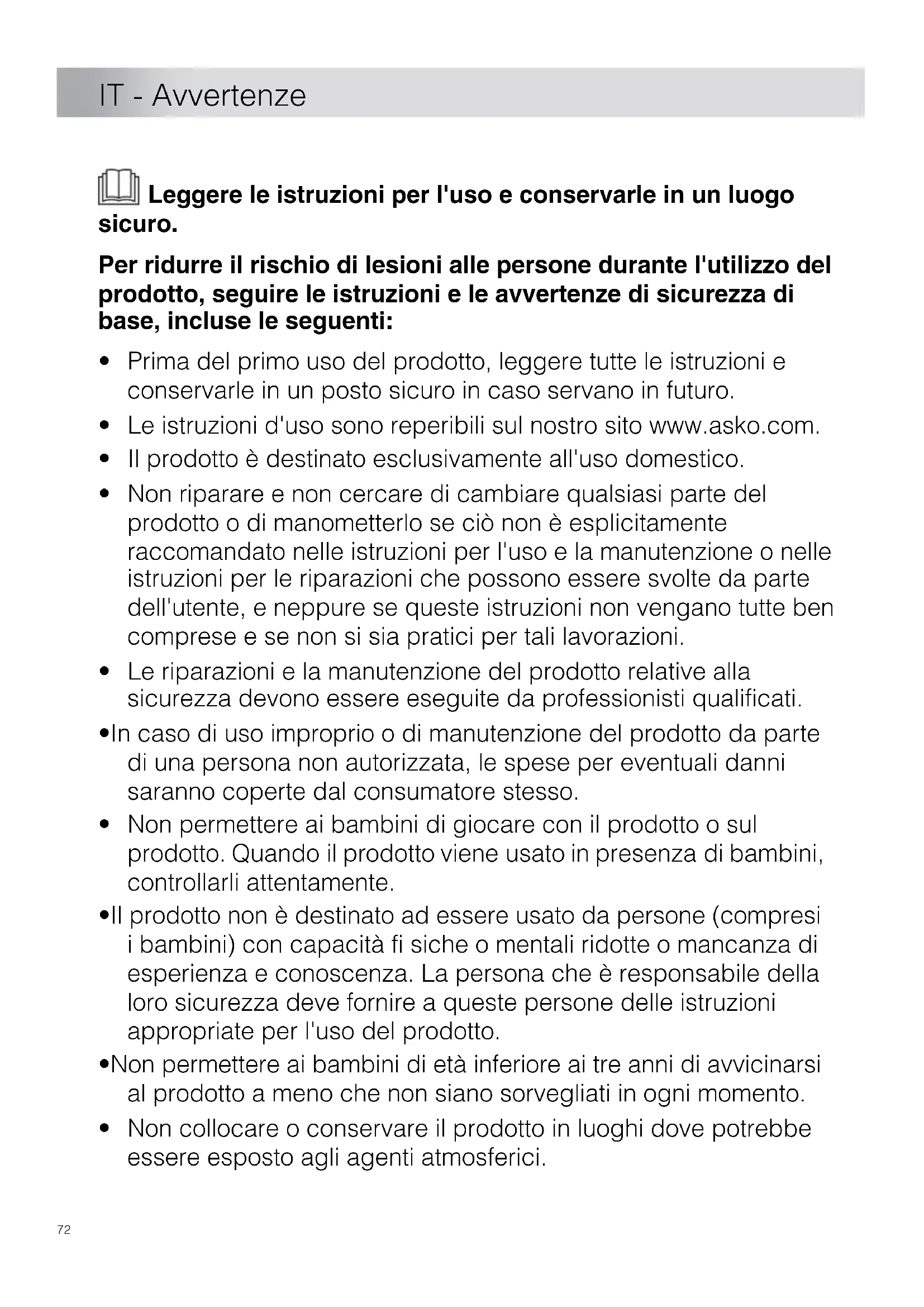 - Le istruzioni d'uso sono reperibili sul nostro sito www.asko.com.