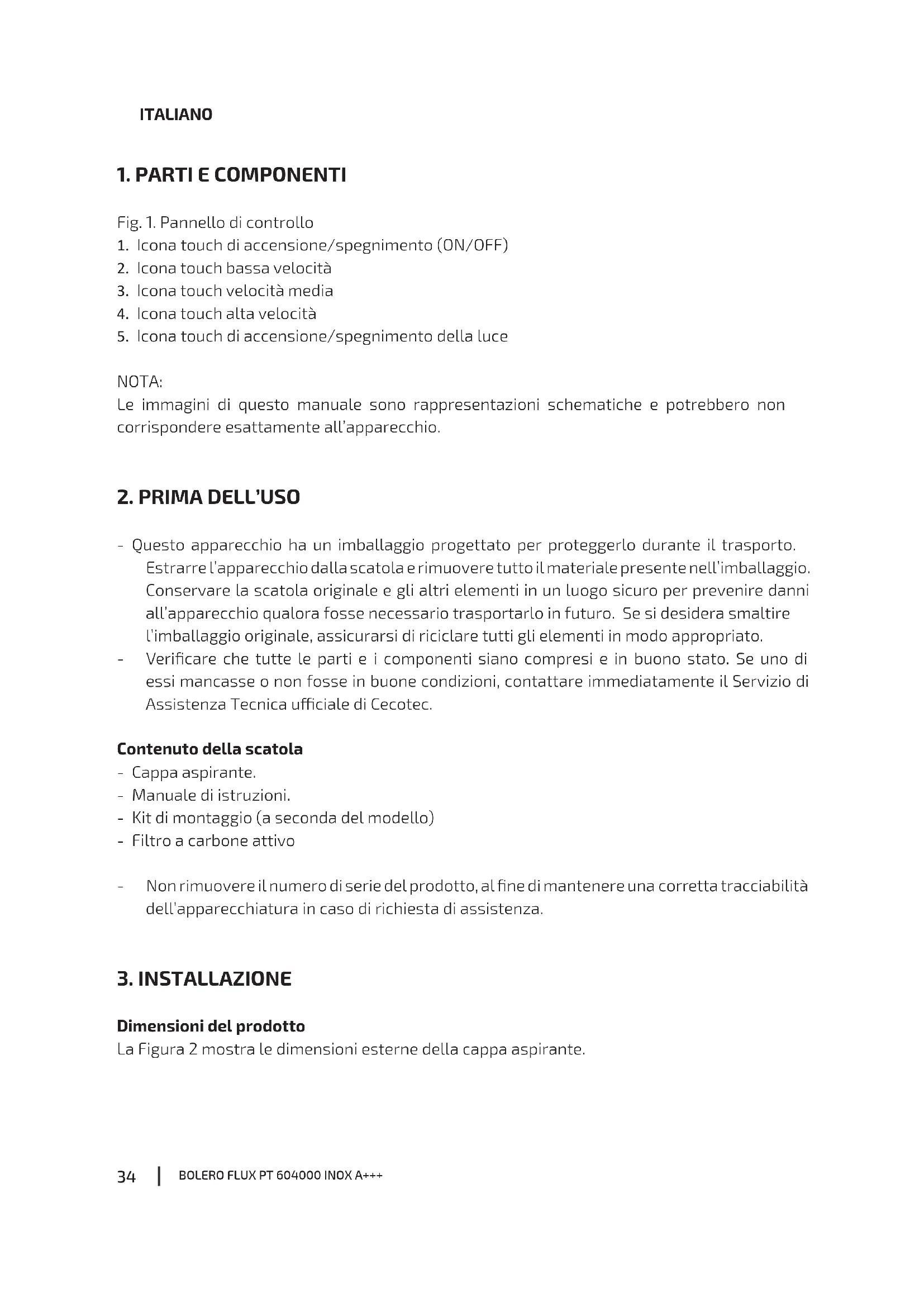 MANUALE UTENTE Bolero Flux PT 604000 Inox A+++ CECOTEC