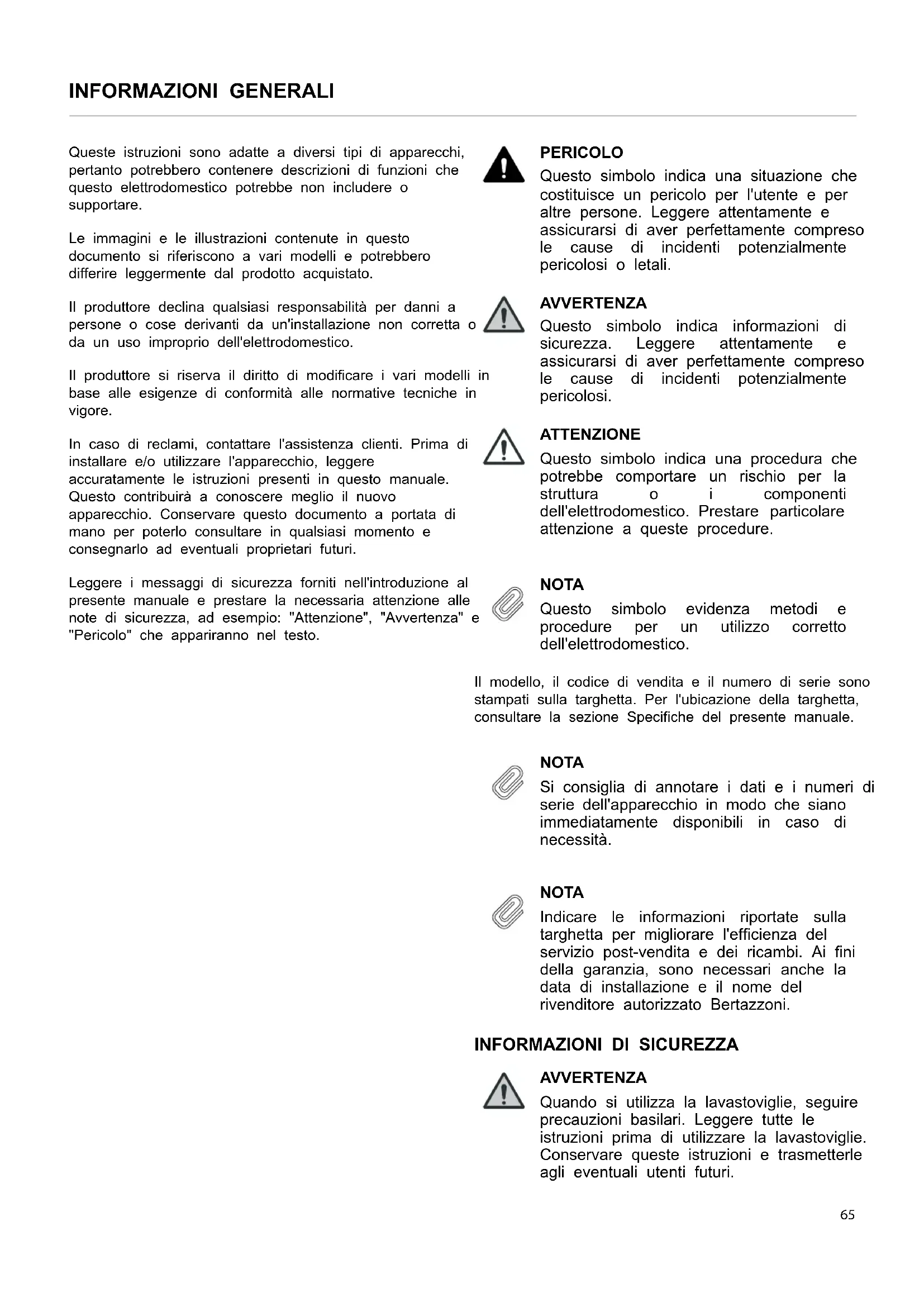 MANUALE UTENTE DW60S3IBPSS BERTAZZONI
