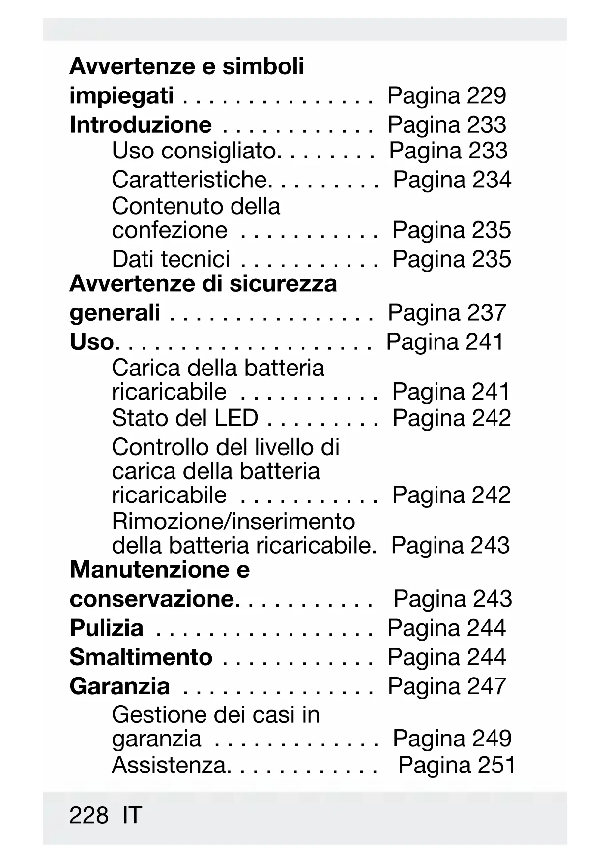 Indicazioni per l’uso e per la sicurezza Pagina 228